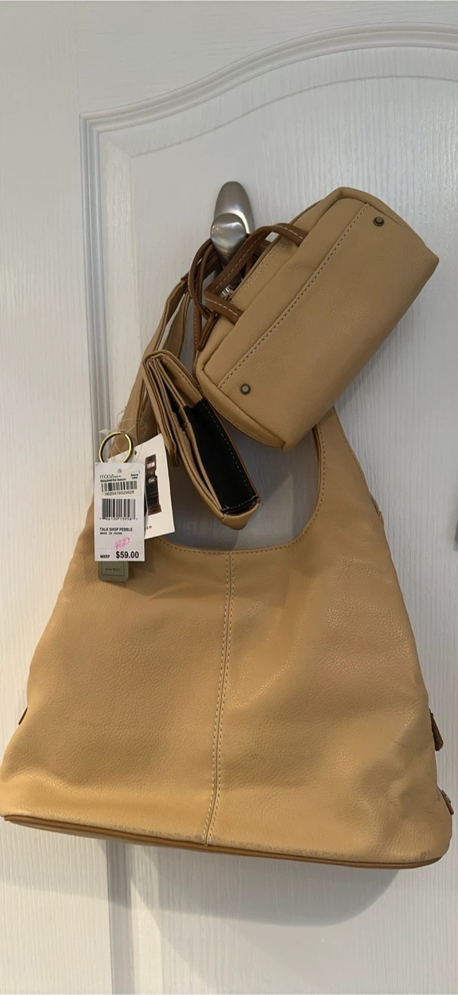 Brand new Nine West beige faux leather shoulder bag. It comes with a matching wallet and a small pouch.