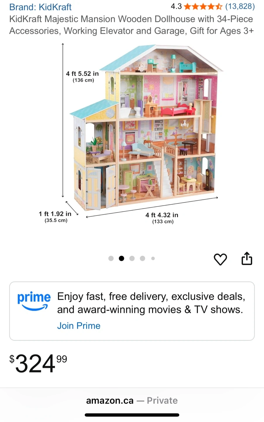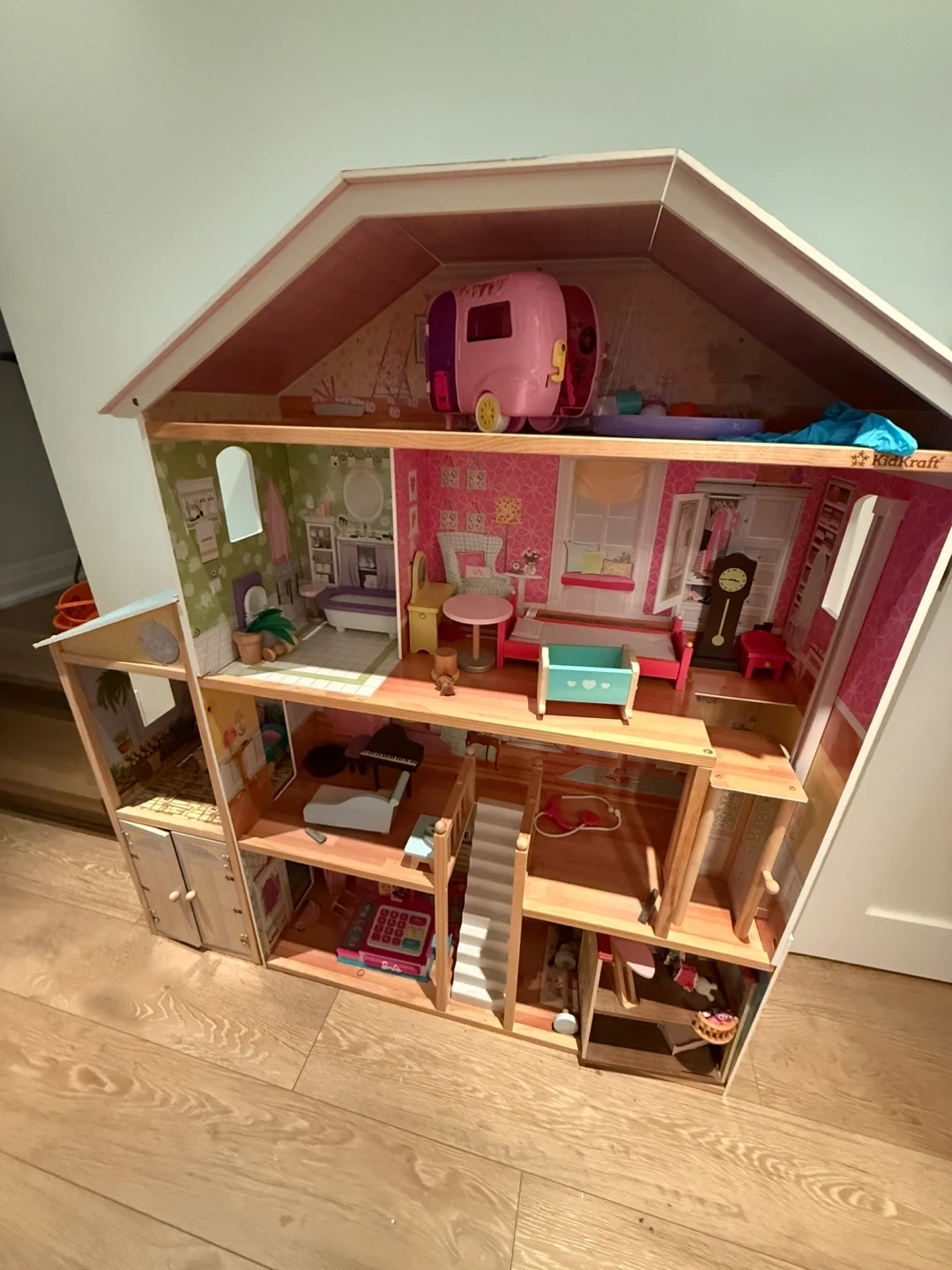 Selling a KidKraft Majestic Mansion wooden dollhouse. It comes with 34-piece accessories, a working elevator, and a garage! It's perfect for ages 3+. Originally bought for $324.99