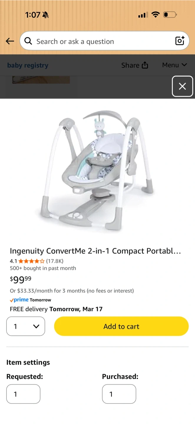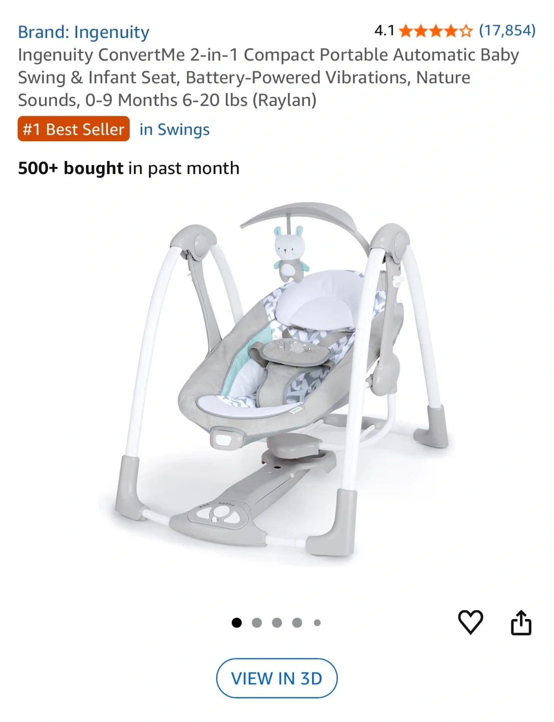 This Ingenuity ConvertMe 2-in-1 swing offers battery-powered vibrations and soothing nature sounds for your baby. It's designed for infants from 0-9 months, with a weight range of 6-20 lbs. The compact, portable design makes it easy to use at home or on the go.
