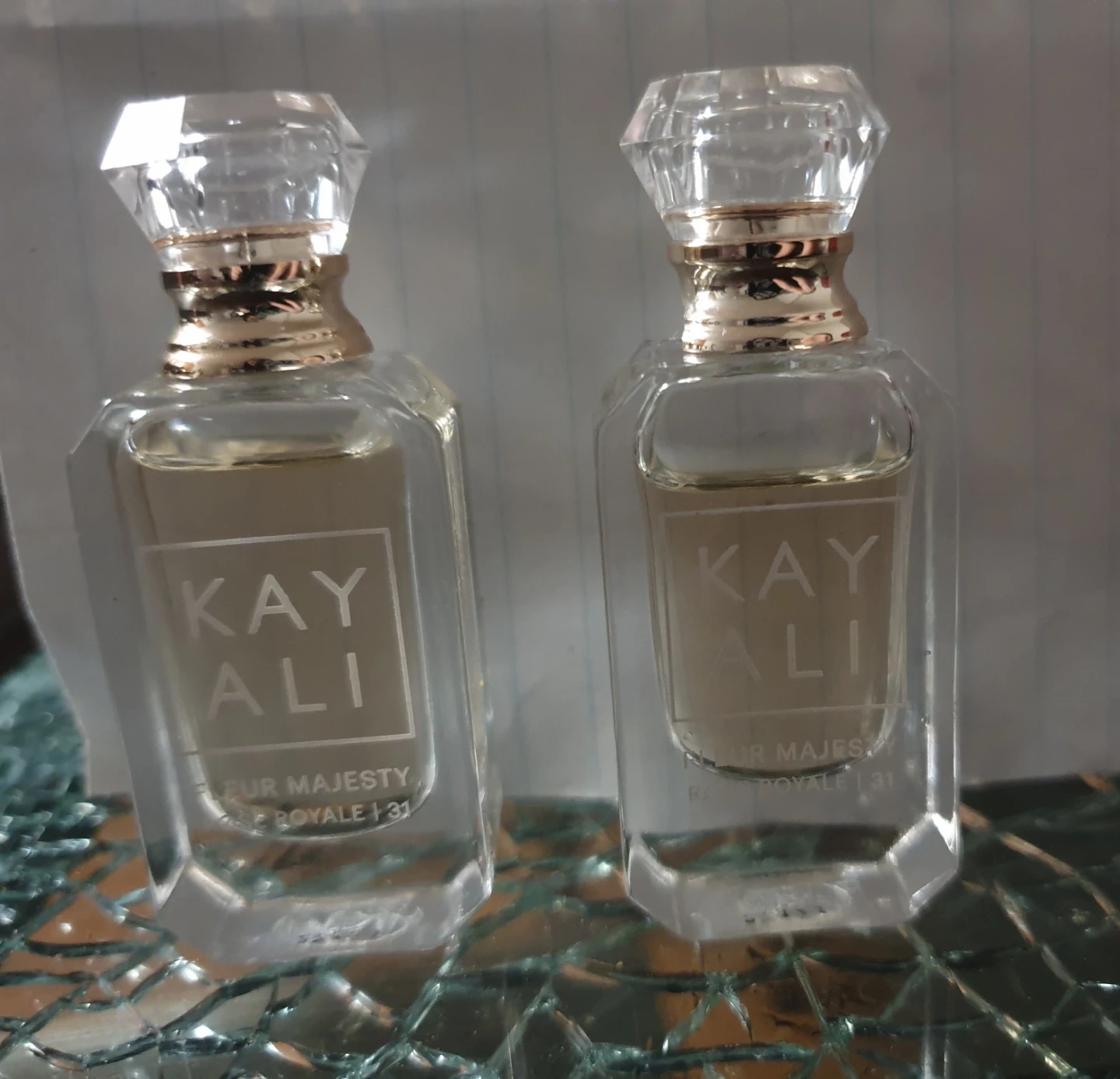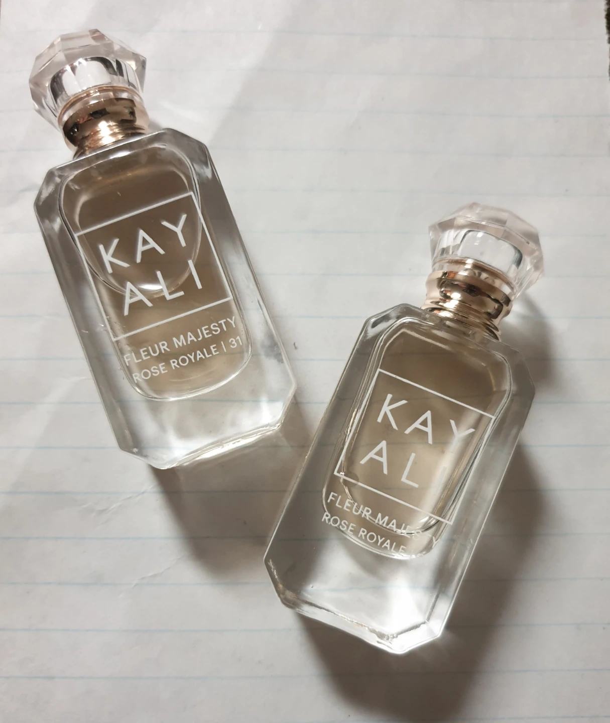 Two bottles of KAYALI Fleur Majesty Rose Royale | 31 perfume. 31ml bottles. A captivating floral scent.