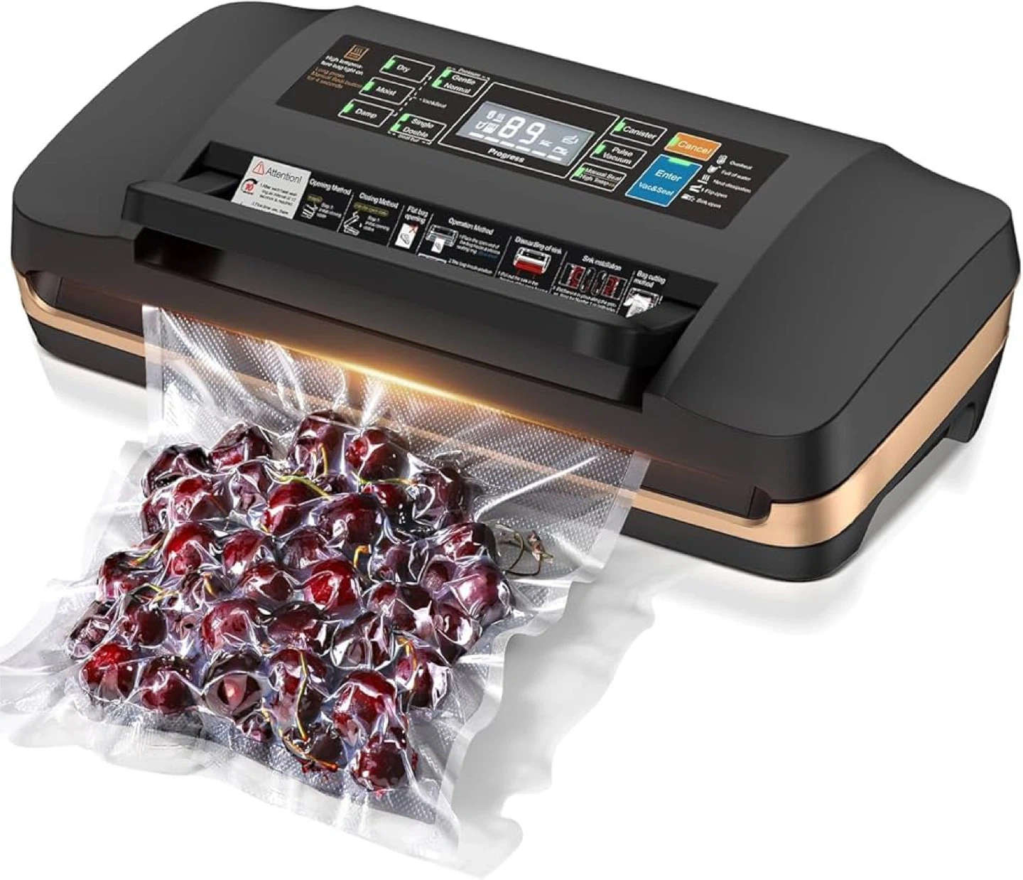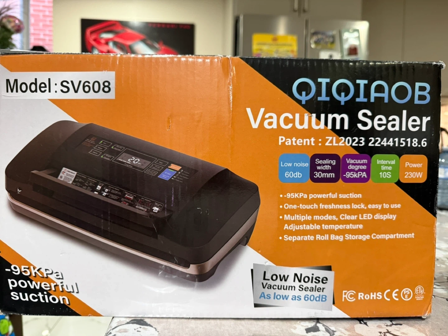 Selling a brand new QIQIAOB Vacuum Sealer Machine, model SV608! It's still in its original box and ready to help you keep your food fresh. Key features include: - One-step full automatic operation - 95KPA vacuum suction - Built-in bag storage - Digital countdown display - Canister & marinate function - Built-in cutter This machine provides durable sealing performance and 8X longer freshness with a strong seal. It has a widened 12mm heating strap and a durable silicone gasket. Get yours today!