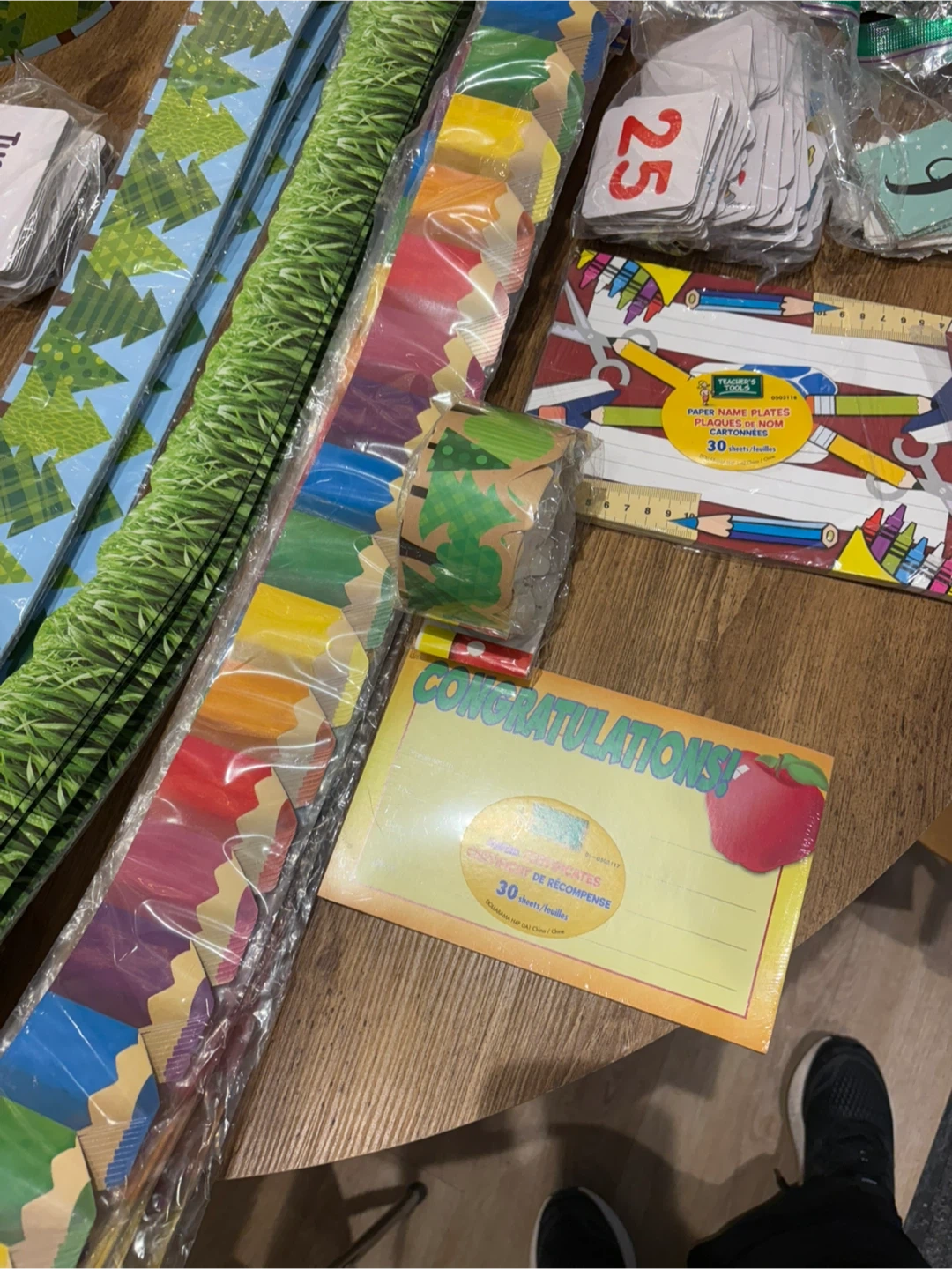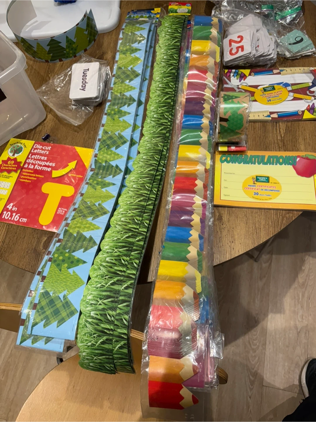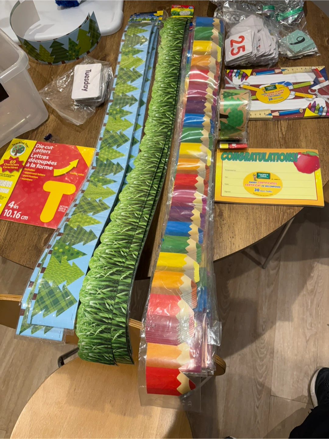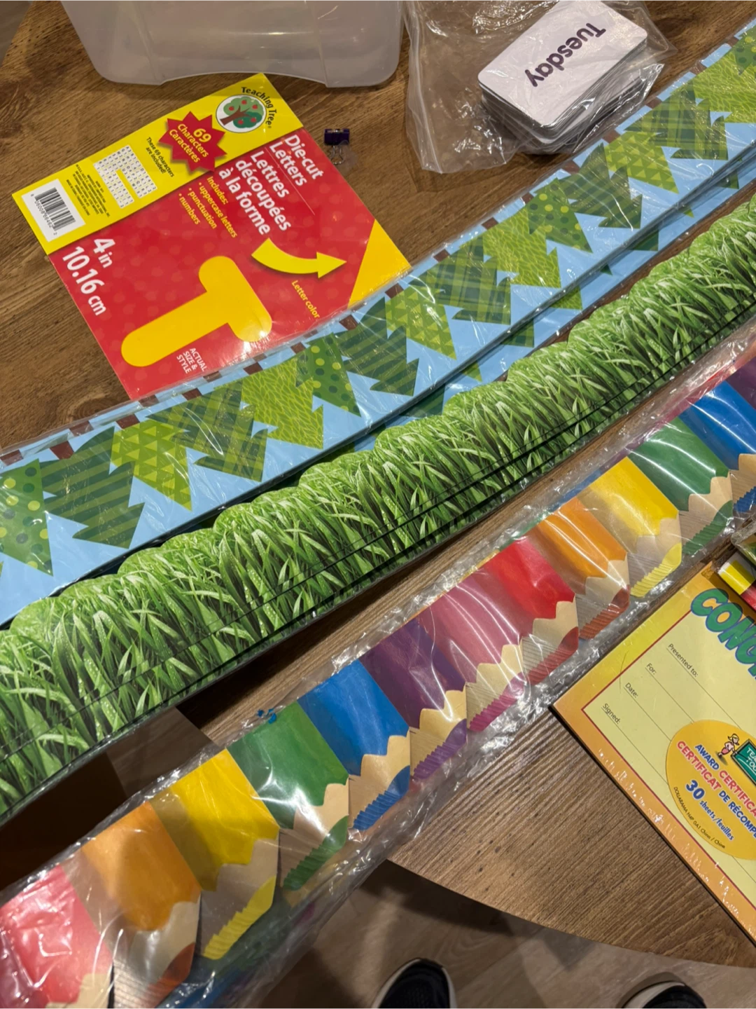 • Multiple bulletin board borders (grass design, tree/forest theme, pencil rainbow border)