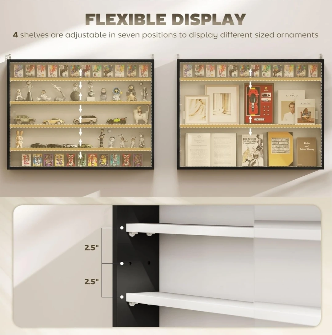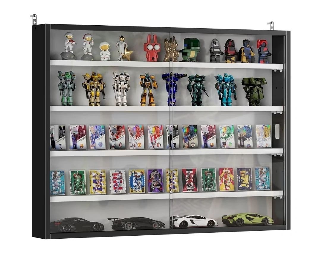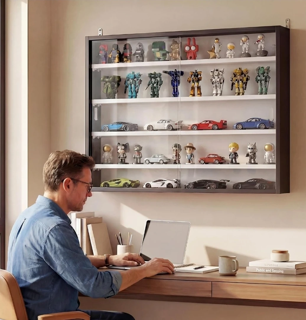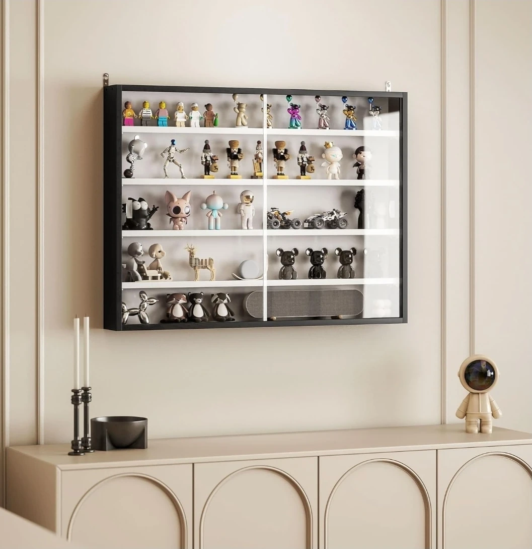 ✨ Modern wall-mounted display cabinet designed to showcase collectibles while saving space.