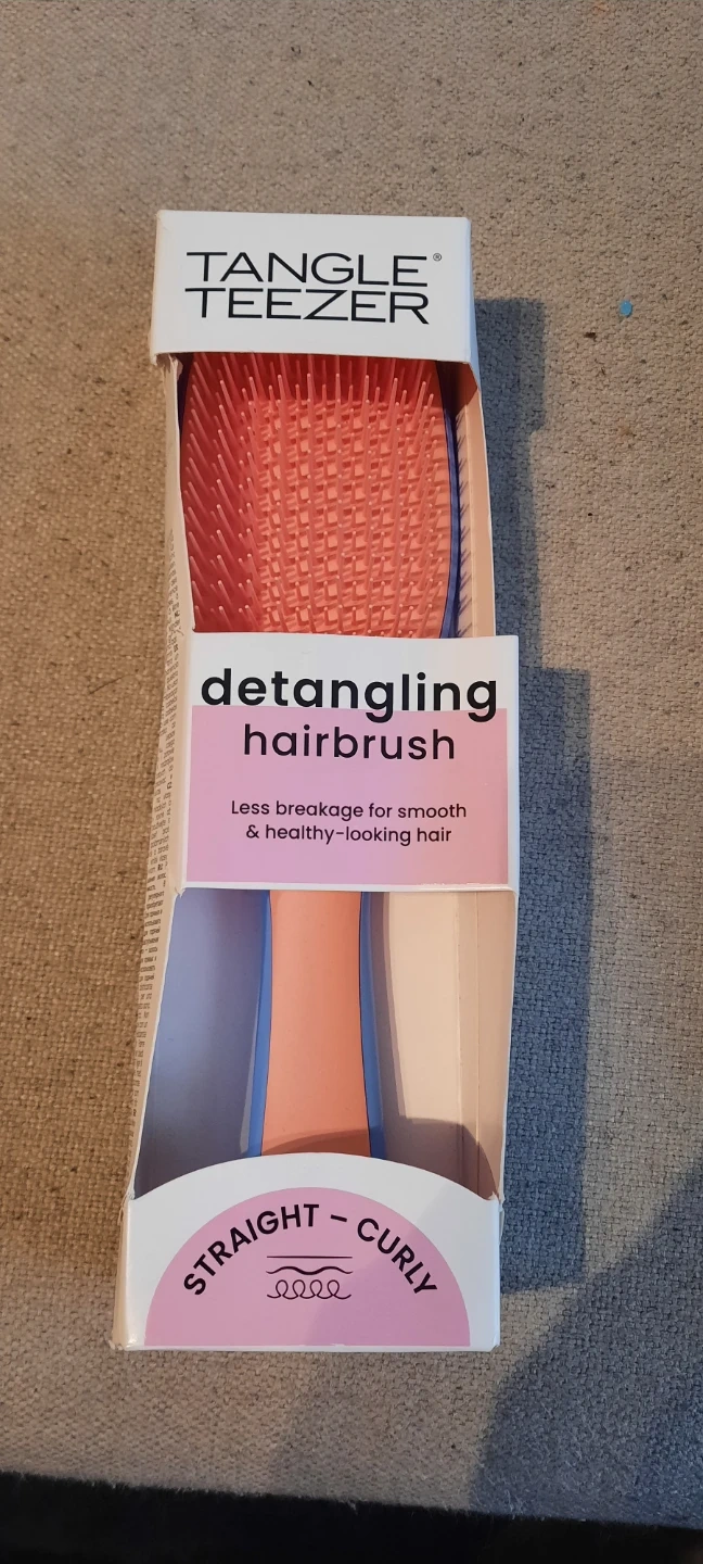 This Tangle Teezer detangling hairbrush is designed for both straight and curly hair. It offers less breakage for smooth and healthy-looking hair. The brush features unique bristles for effective detangling. It's a great tool for everyday hair care!