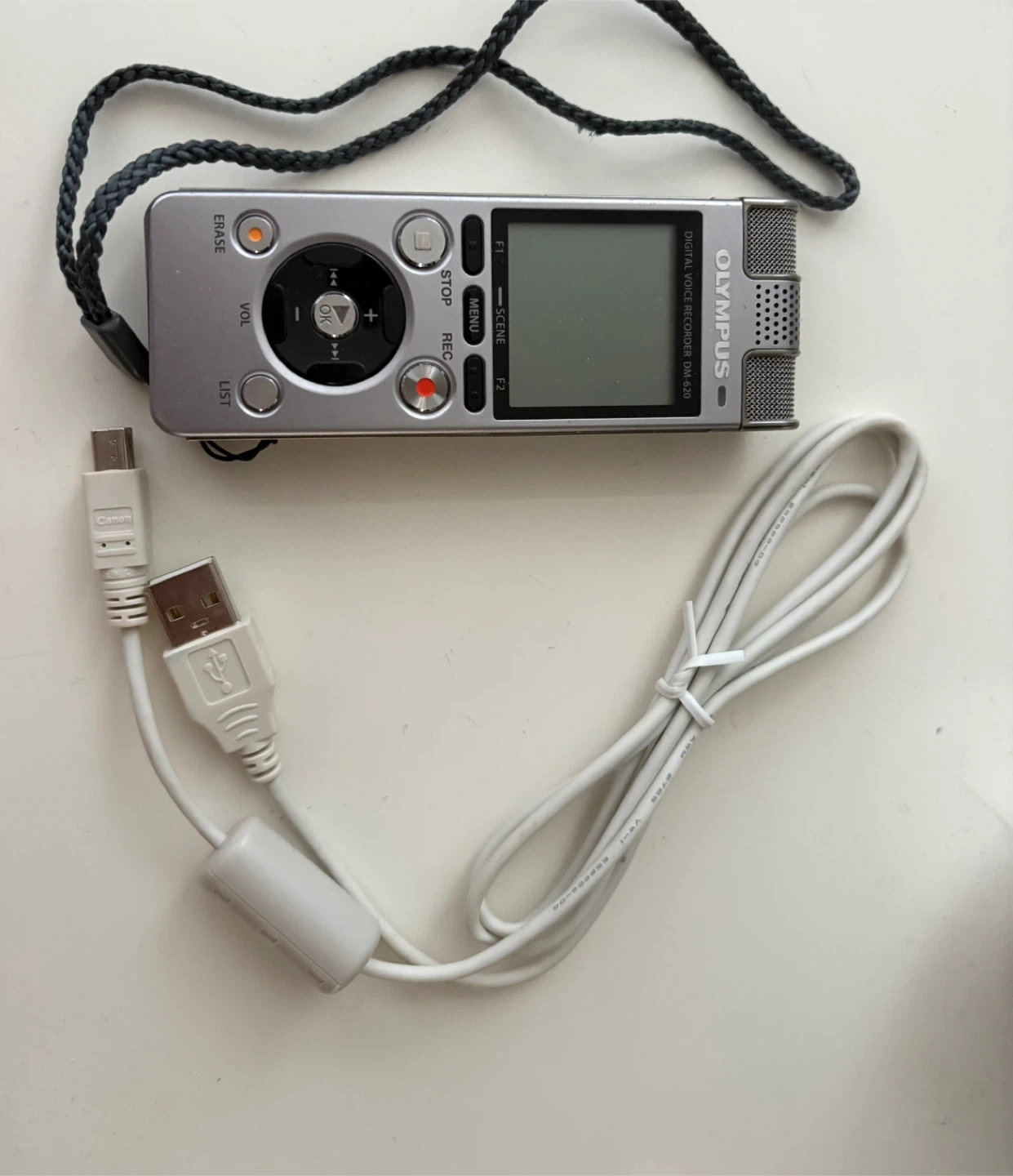 Olympus DM-620 digital voice recorder in perfect working condition. Very clean and well cared for. Comes with charging cable