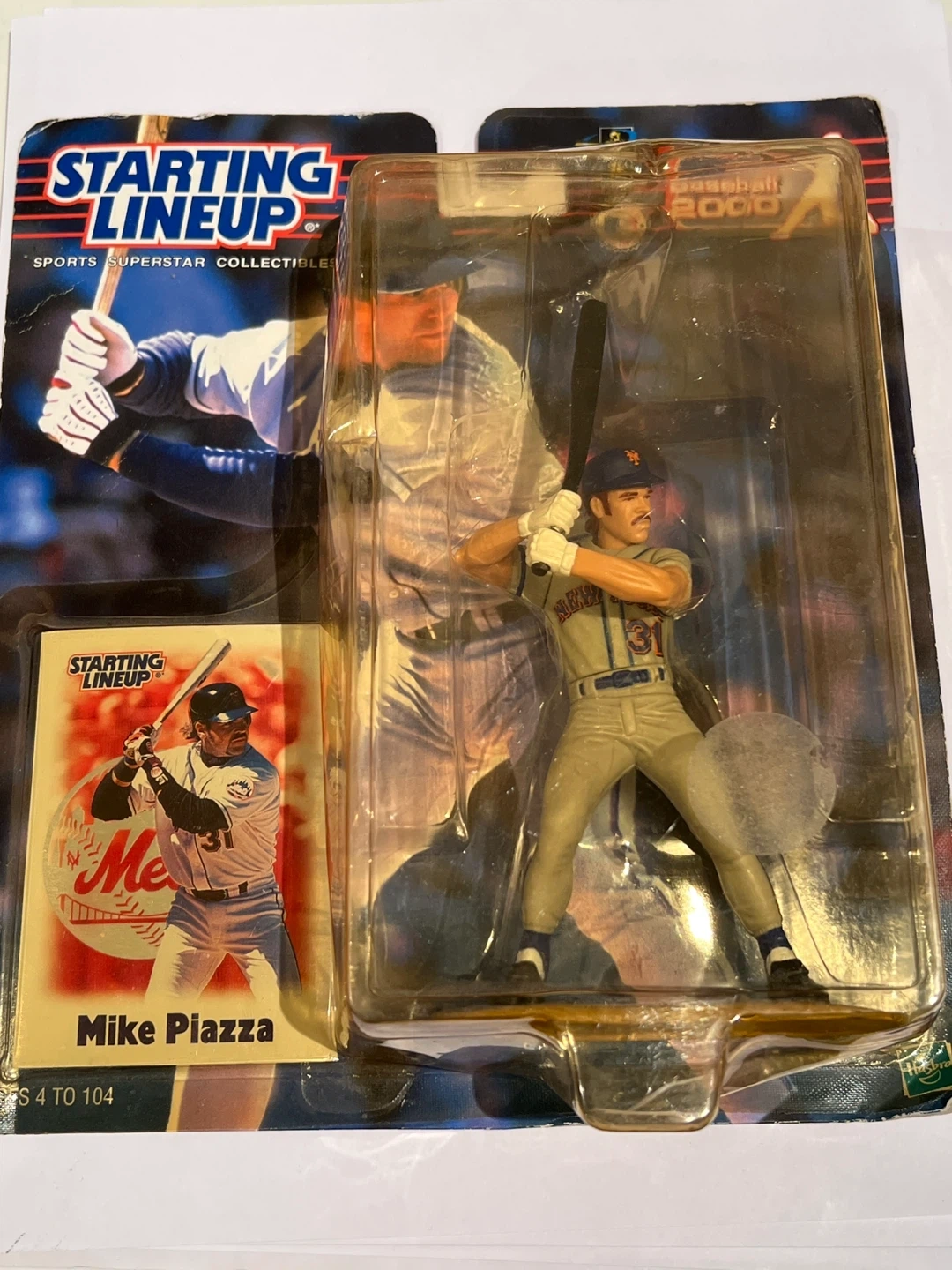 Selling a Starting Lineup Mike Piazza baseball figurine. It's part of the Sports Superstar Collectibles series from 2000. The figure is still in its original packaging, making it a great addition to any baseball memorabilia collection!