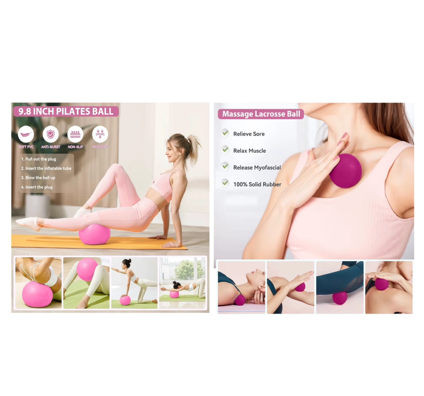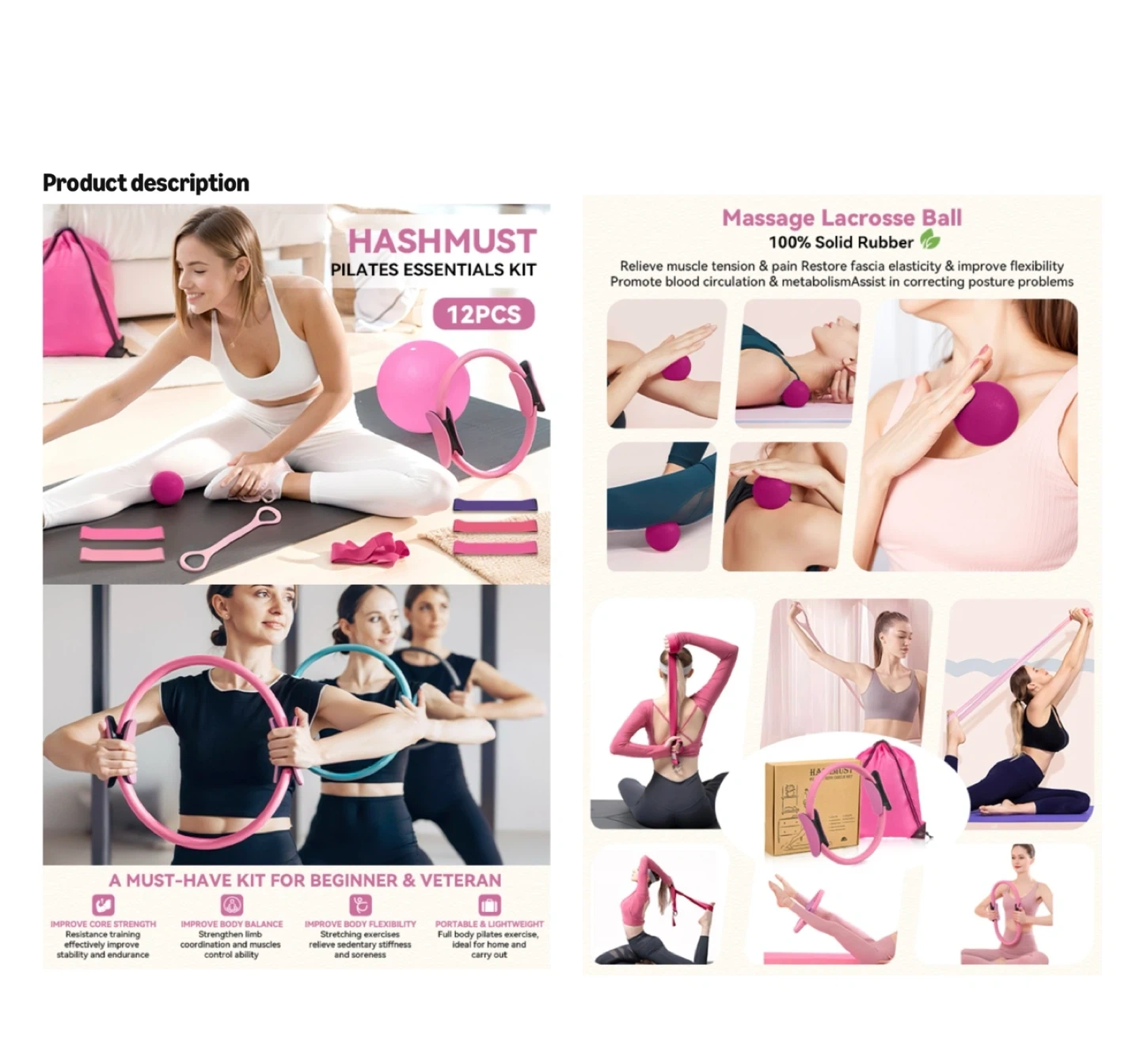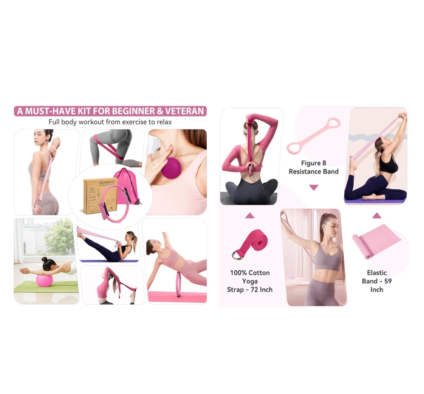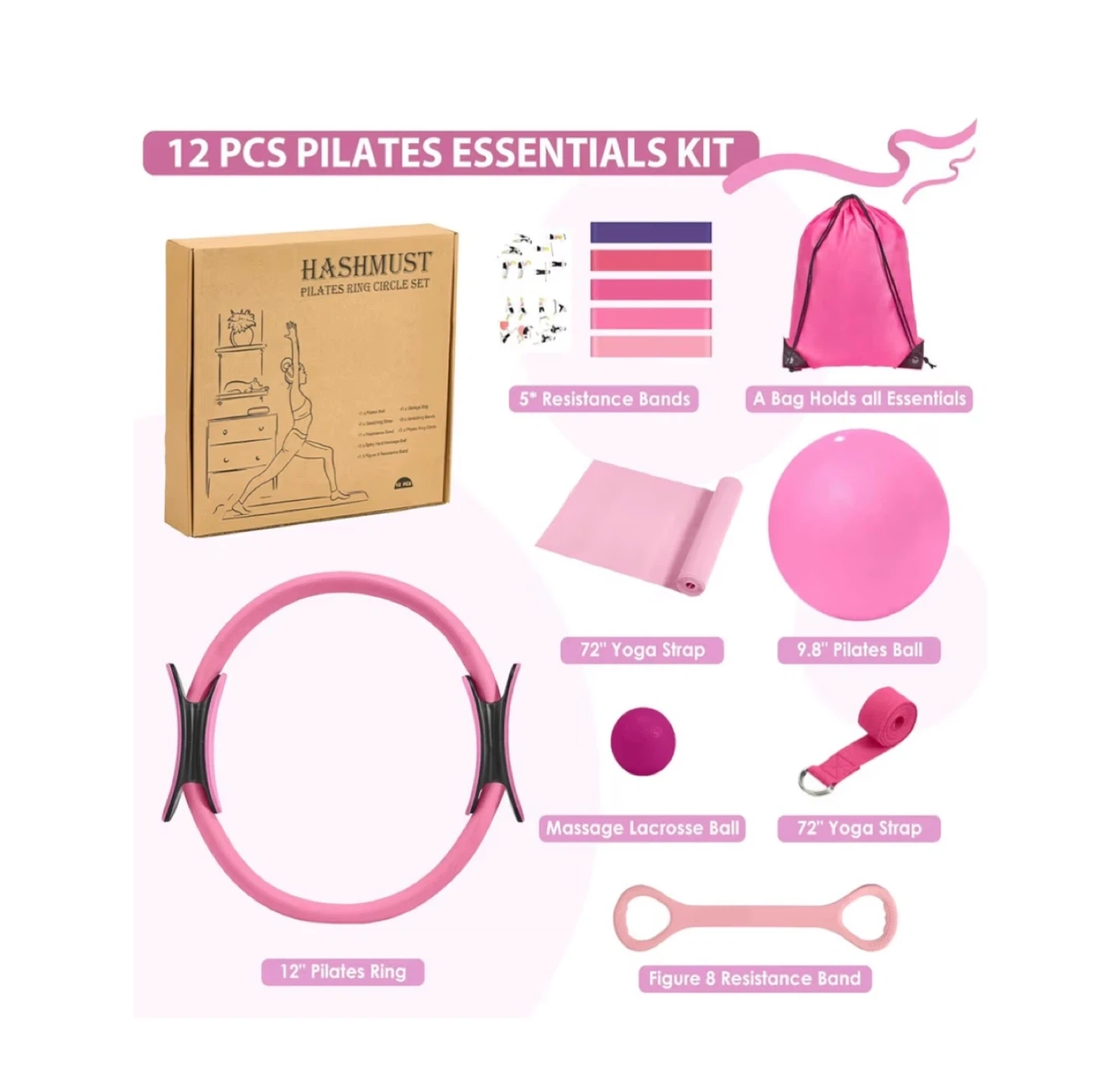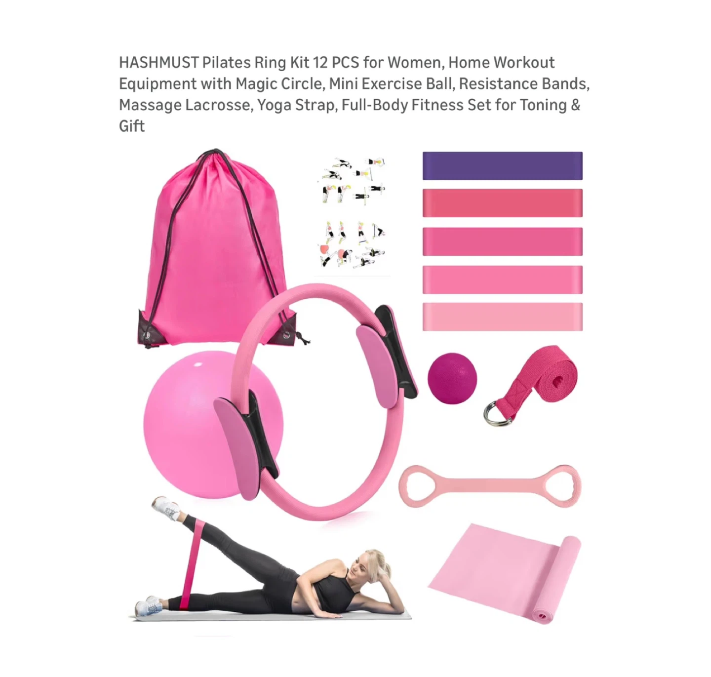 Brand new Pilates Ring Kit 12 PCS for Women, Home Workout Equipment with Magic Circle, Mini Exercise Ball, Resistance Bands, Massage Lacrosse, Yoga Strap, Full-Body Fitness Set for Toning & Gift