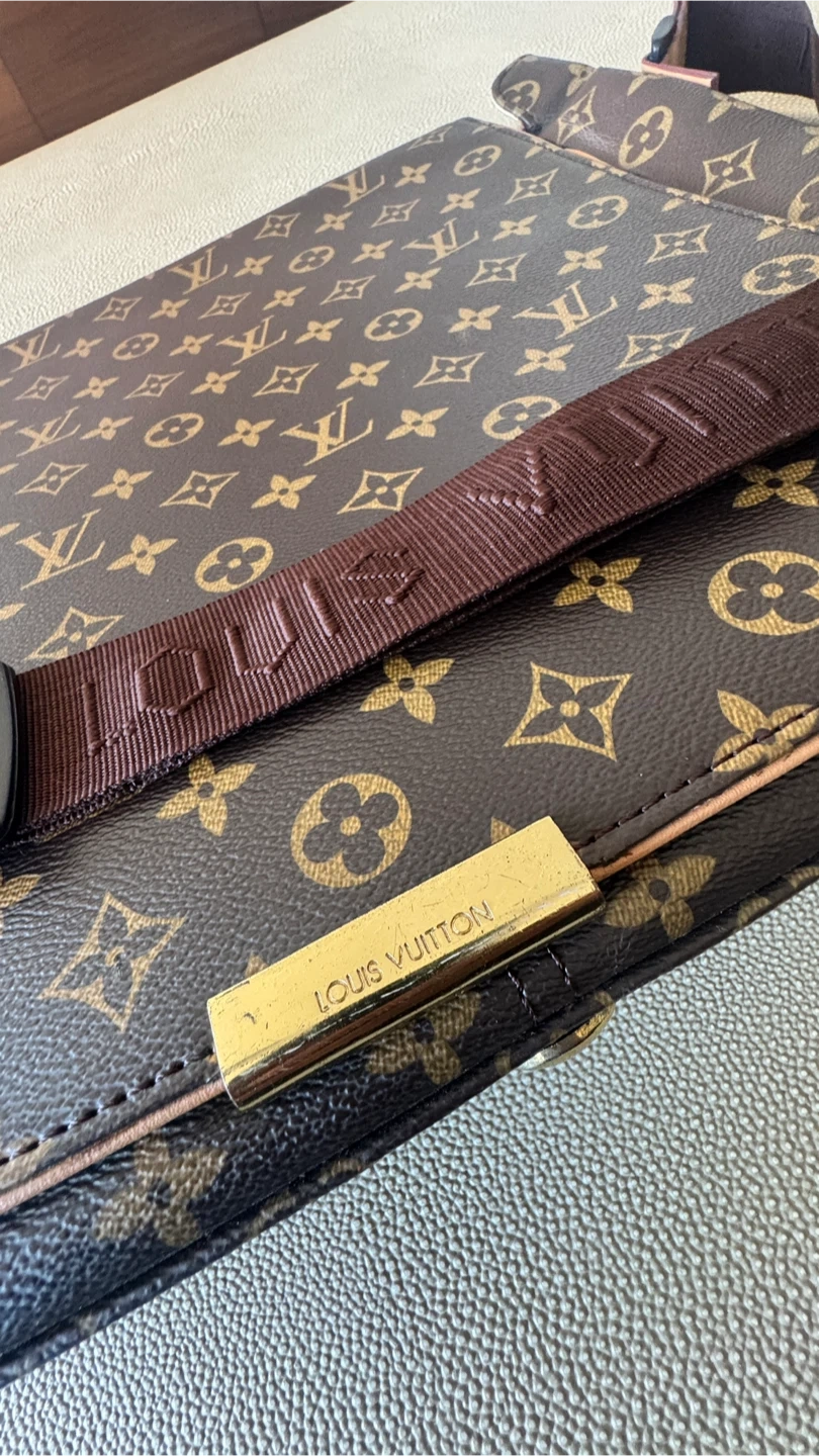 Good pre-owned condition. Light signs of wear throughout (see photos), including some fraying on the strap and minor wear on edges, but fully functional and still looks great overall.