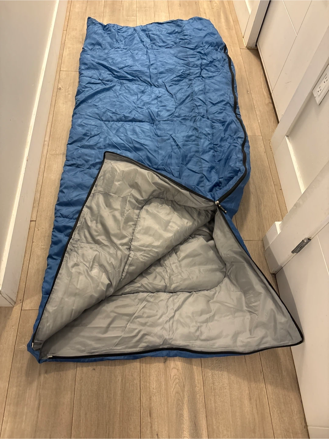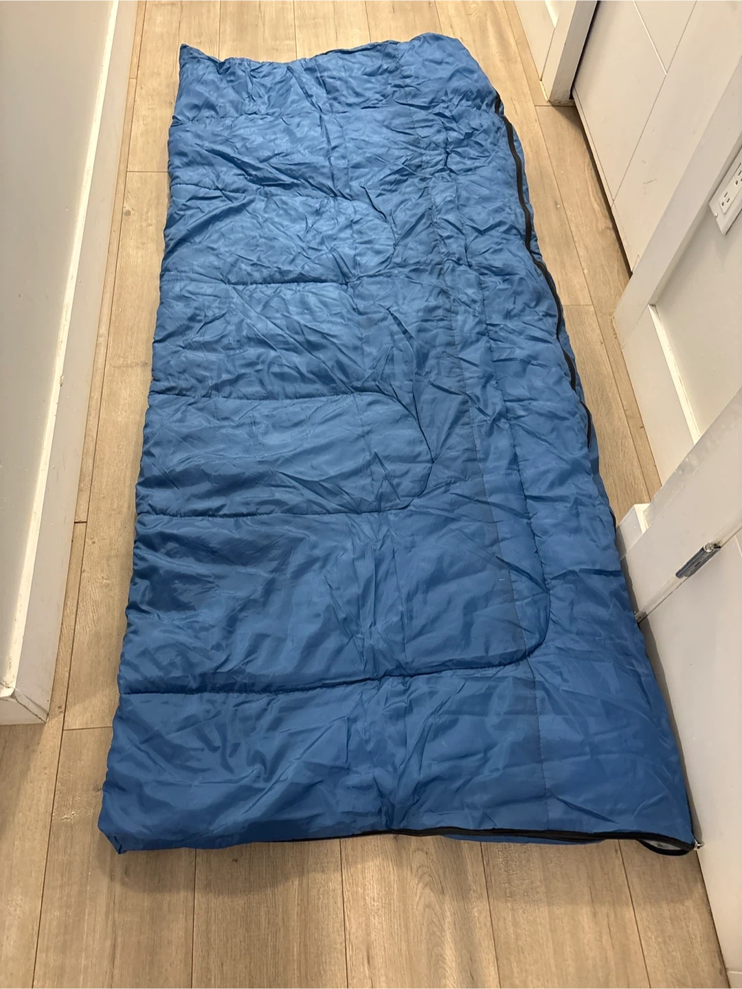 This blue Tera Gear sleeping bag is in perfect condition. It includes a stuff sack for easy transport. Perfect for camping trips!