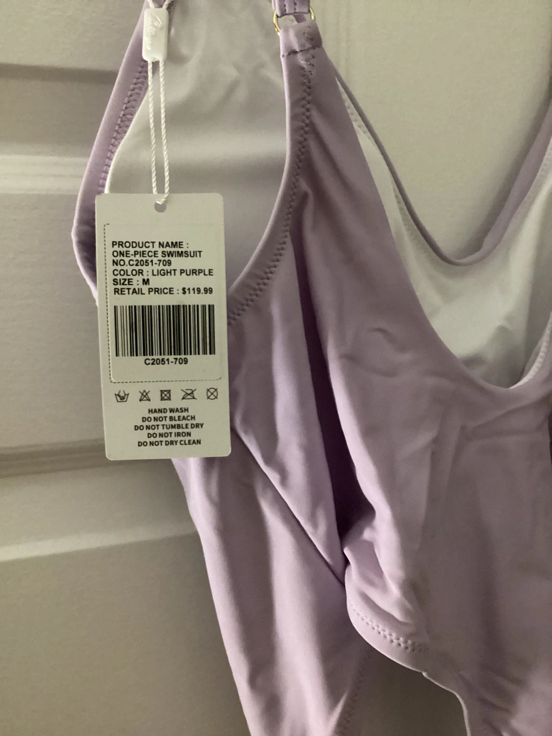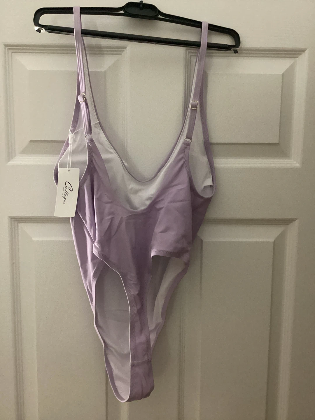Selling a new Colloyes one-piece swimsuit in a lovely light purple colour. It's a size medium and in great condition. The tag shows it originally retailed for $119.99. Perfect for the summer or spa!