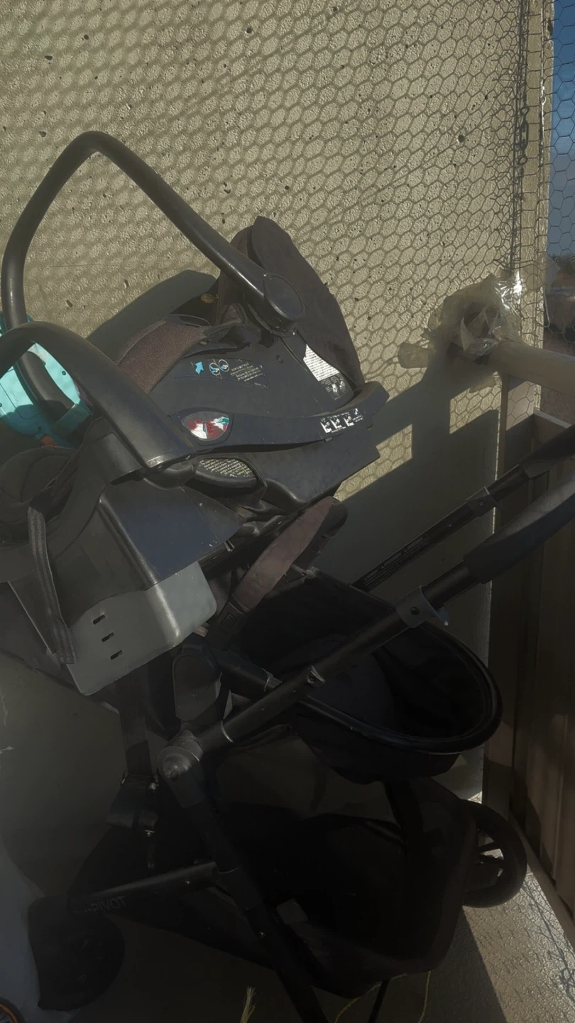 This is a Graco SnugRide infant car seat with a compatible stroller. It's black and features a sturdy frame. The stroller has a storage basket underneath. It's suitable for infants. It's comes with bassinet , stroller , , car seat with booster with all accessories