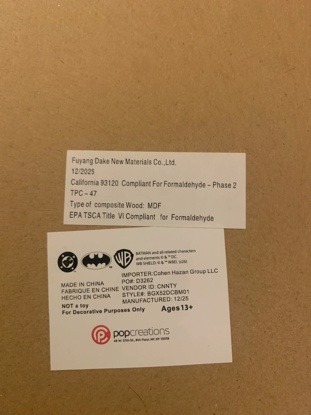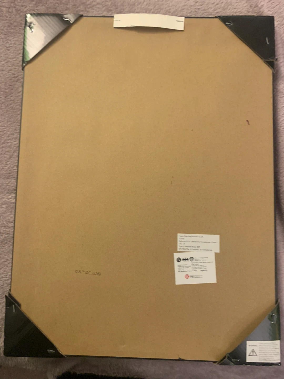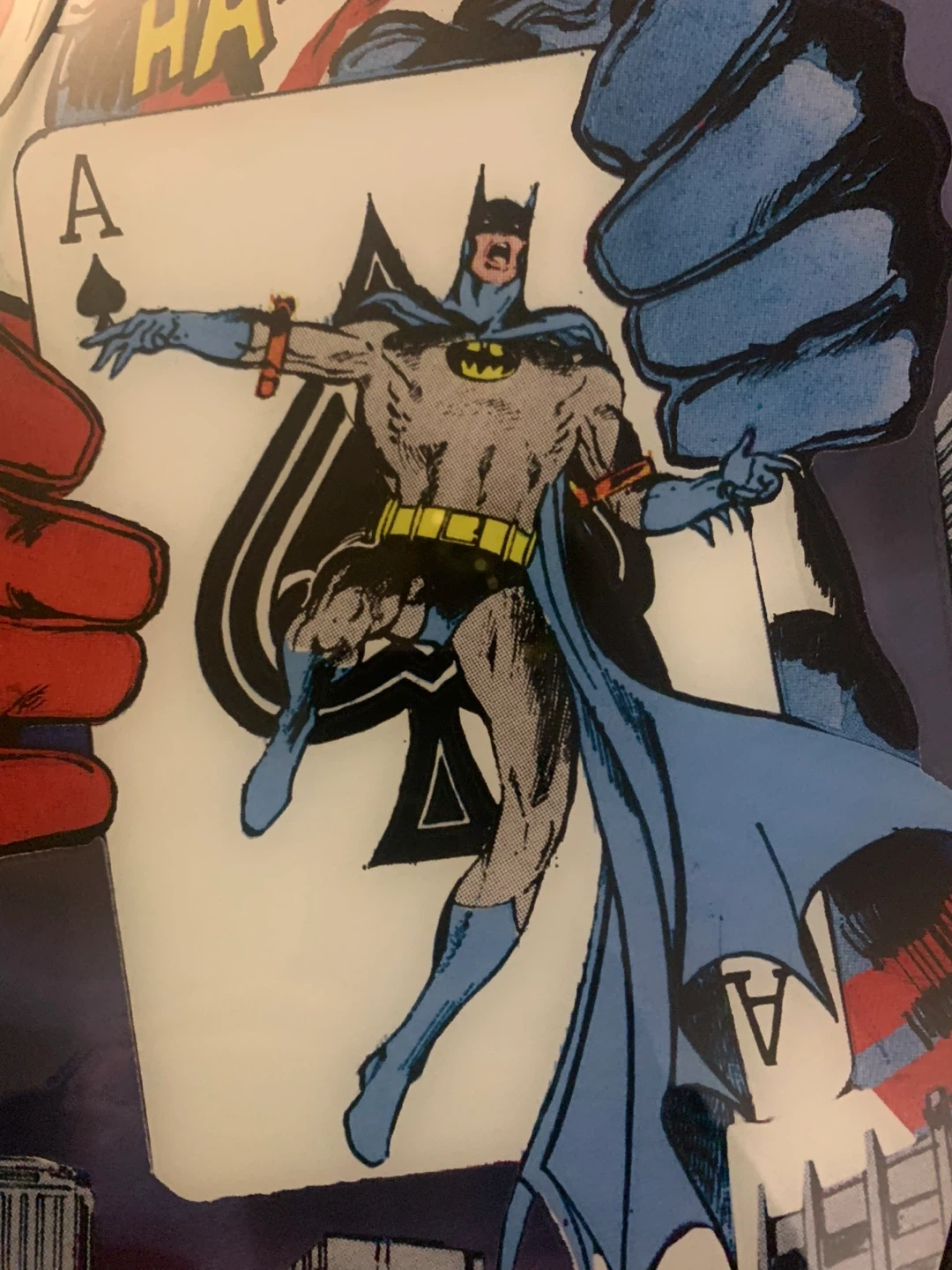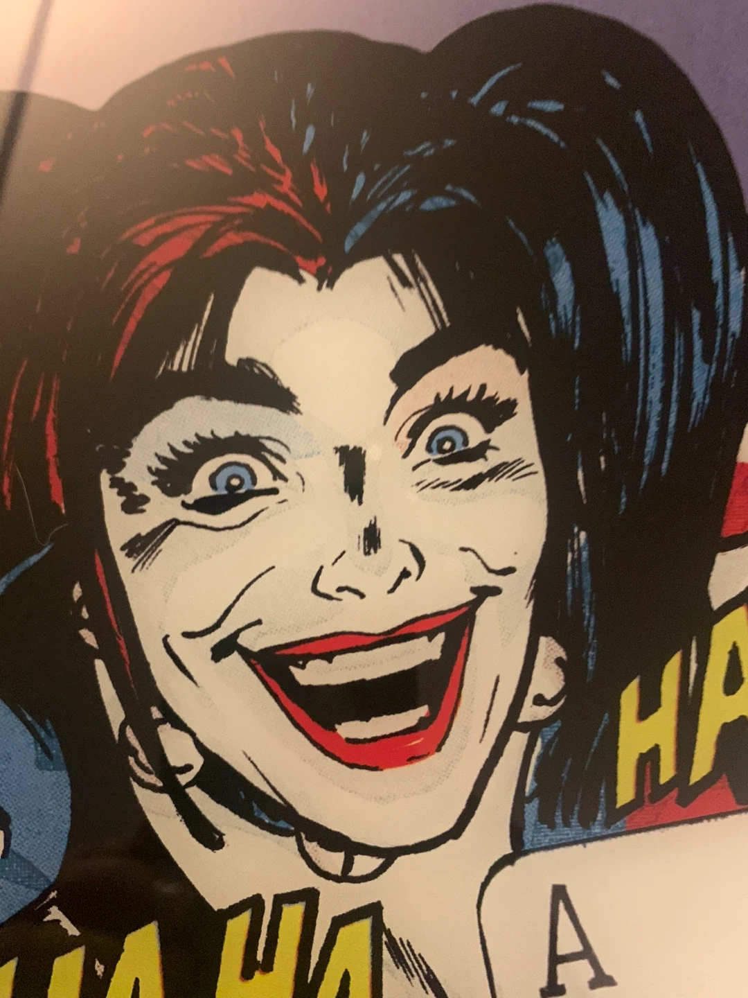 Framed comic art featuring Harley Quinn and Batman. Text reads "LOOK OUT, GOTHAM! HARLEY'S BACK IN TOWN!". Made by popCreations.