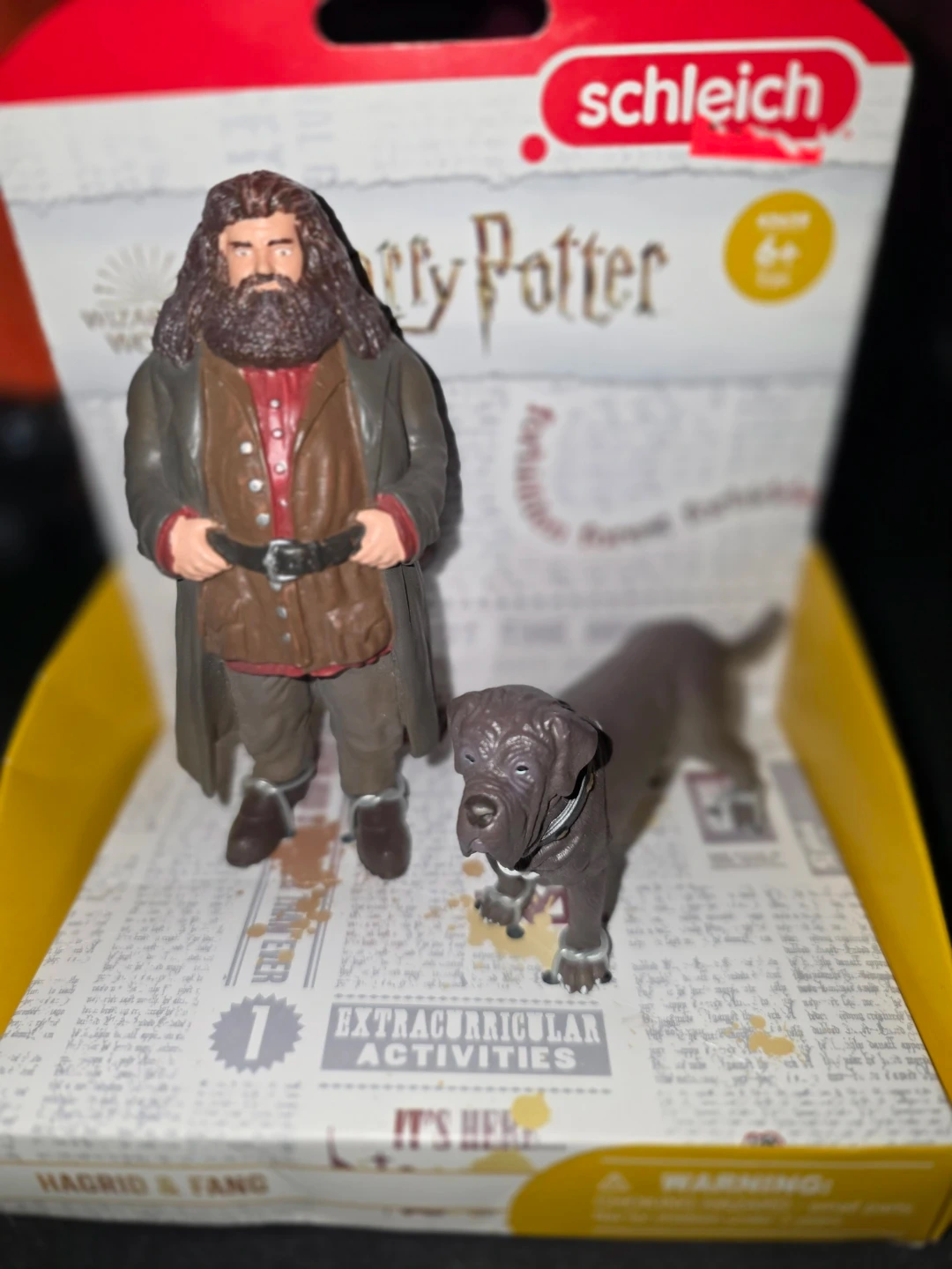 This is a Schleich Harry Potter Hagrid & Fang figure set. It's designed for ages 6 and up. Great for collectors or fans of the series!