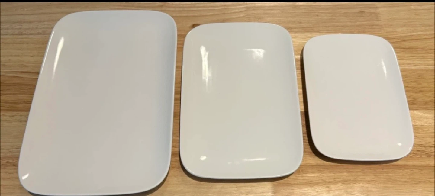 Three white rectangular serving plates. They come in three different sizes for varied use: large, medium and small.Ceramic material.