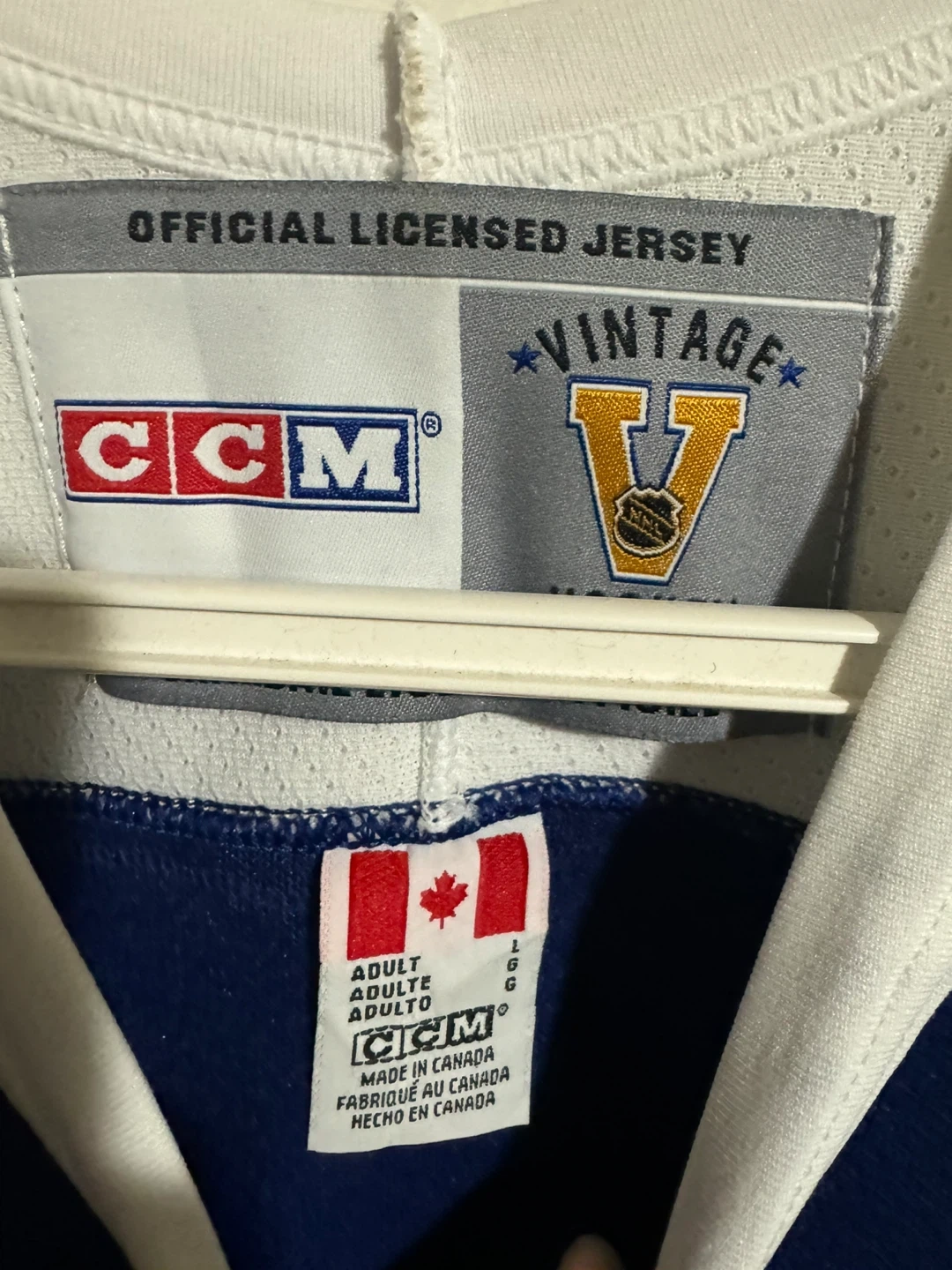 This is a CCM "Vintage" Toronto Maple Leafs hockey jersey. It's an official licensed jersey, made in Canada. Size is large.
