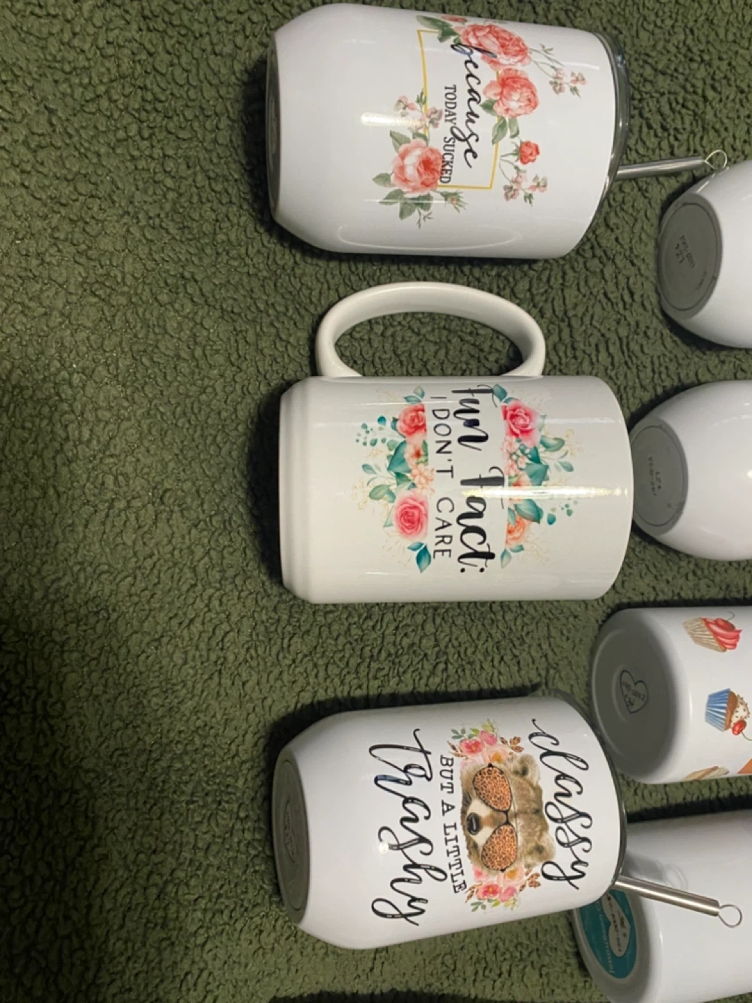 Assorted Tumblers and Mugs with Various Designs