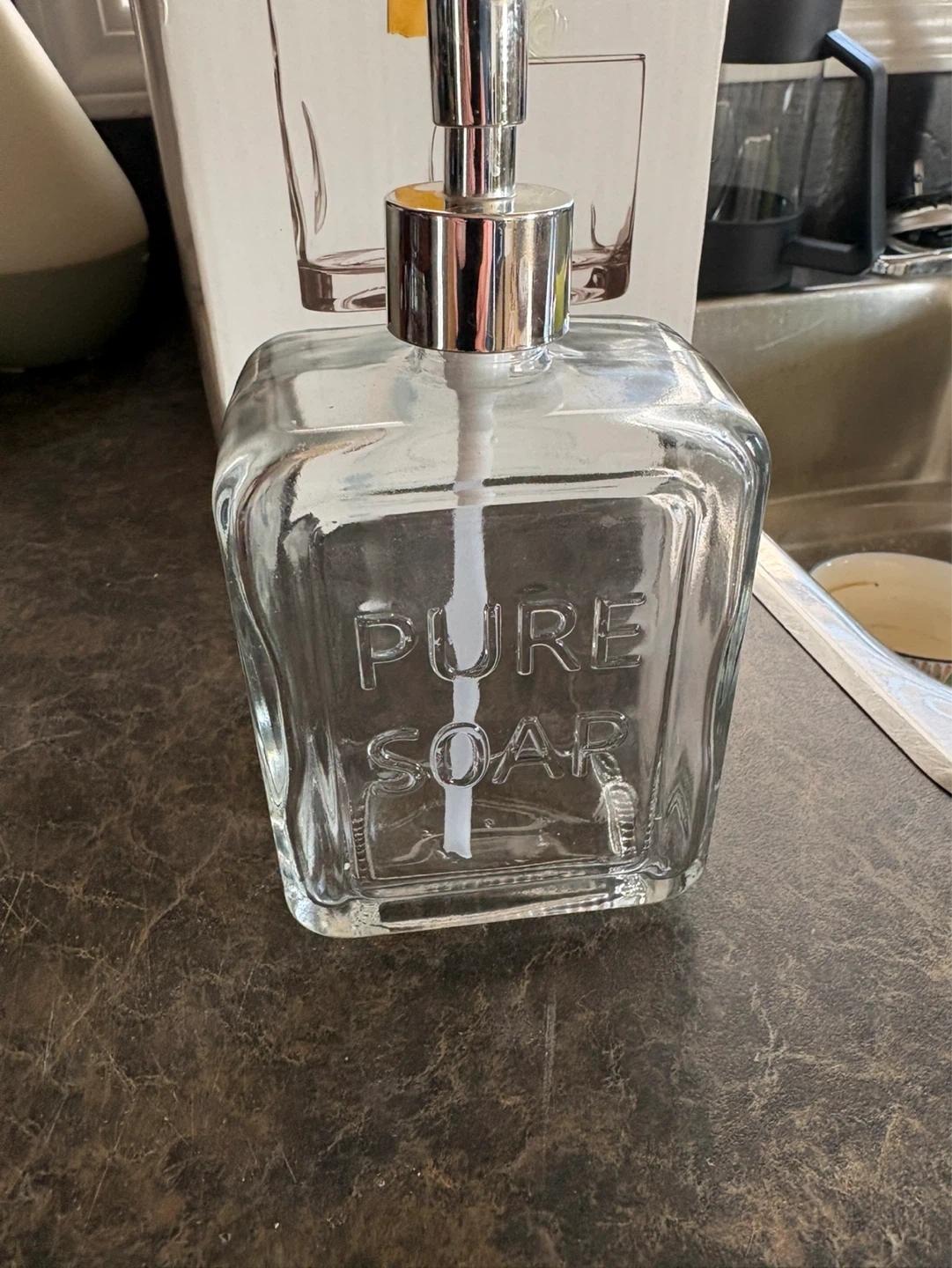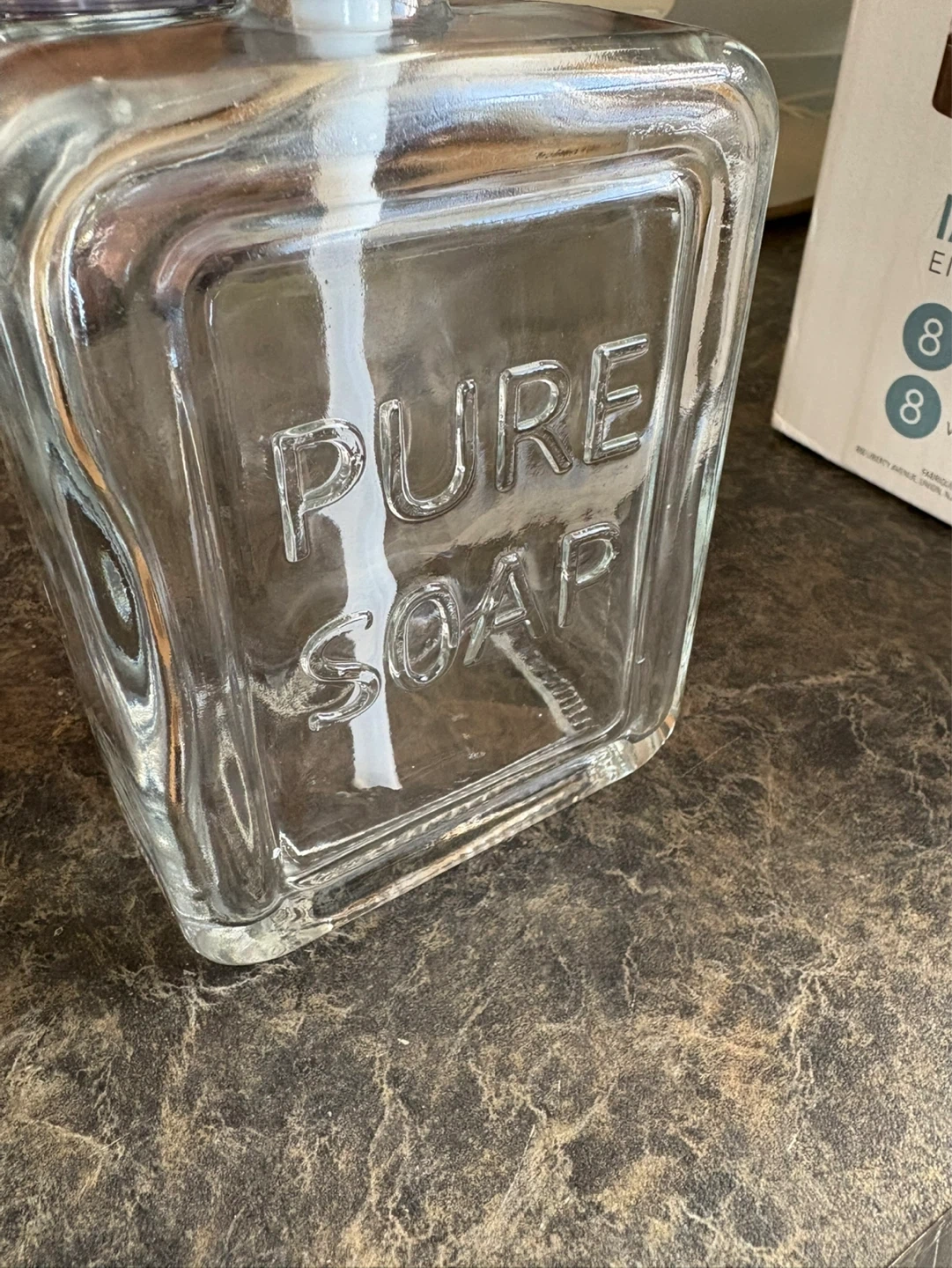 Clear Glass "Pure Soap" Dispenser