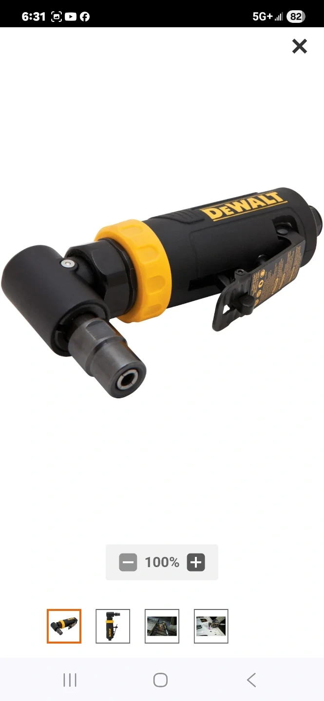 This DEWALT DWMT70782 1/4-inch Angle Die Grinder has a lightweight aluminum body and features an ergonomically designed cushion grip. It has a touch control trigger with a self-locking throttle. Free speed is 20000 RPM and it has a 1/4-inch collet. Rear air exhaust helps blow exhaust away from work surface.
