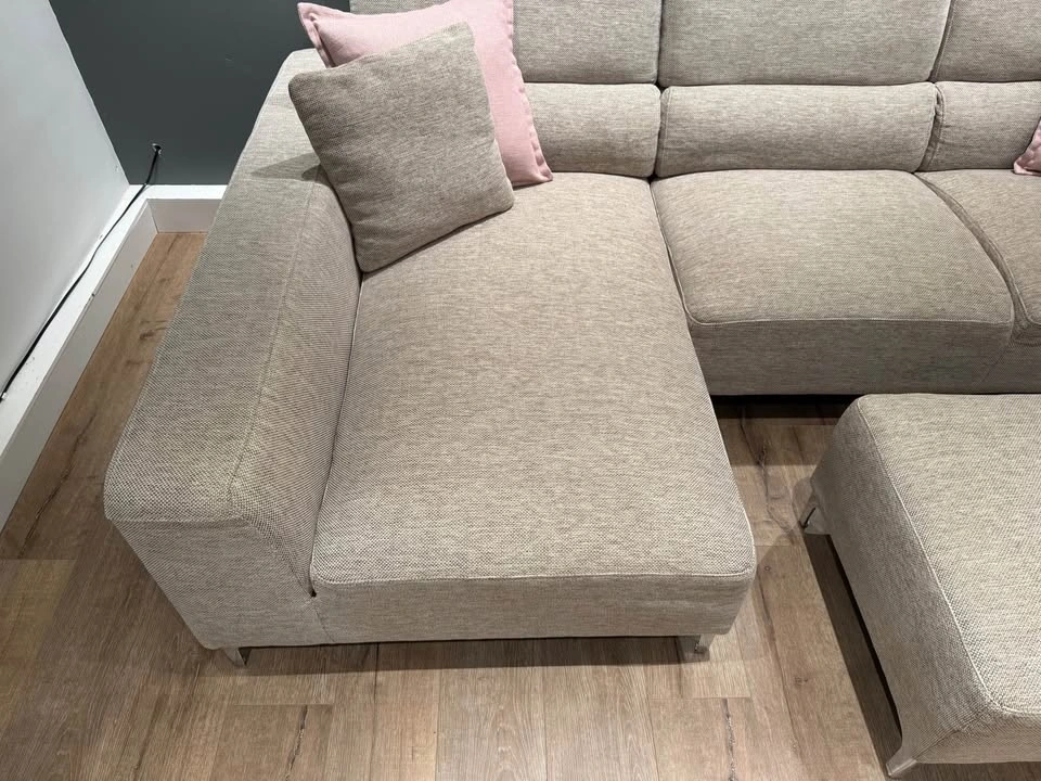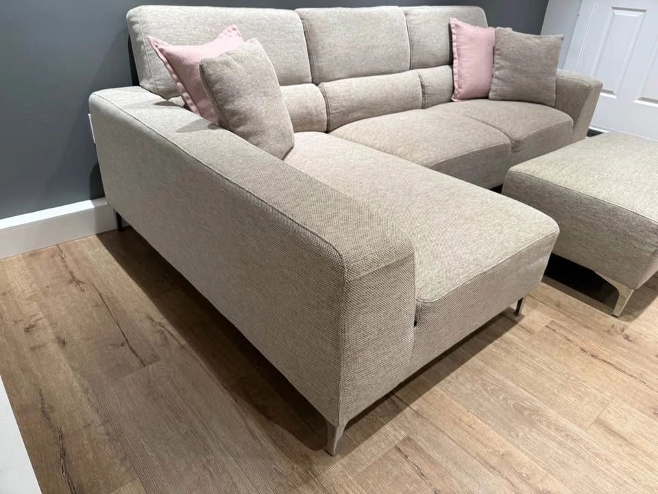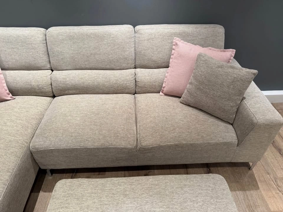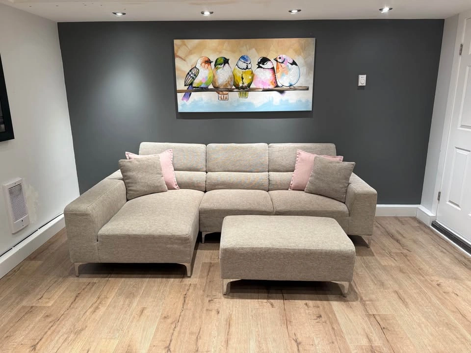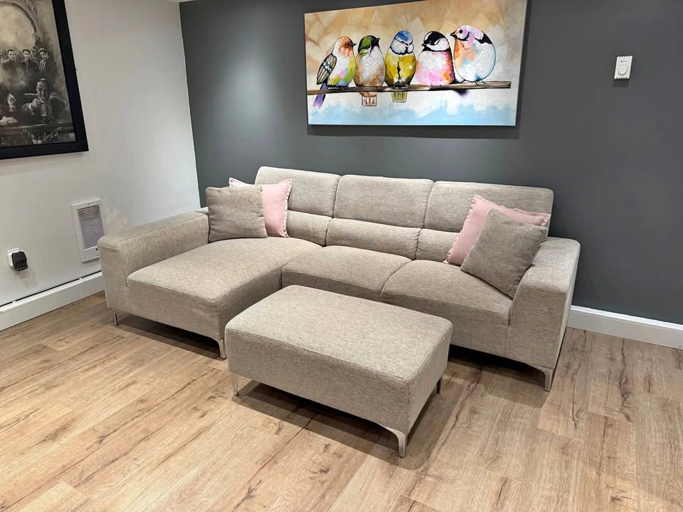 Beautiful QLiving sectional with matching cushions and a coordinating ottoman, featuring soft beige upholstery, wide arms, and a sleek low-profile design. The subtle textured fabric and tailored lines bring a refined, modern touch to any living space. ✨ Features: βœ” Includes matching cushions for a complete, cohesive look βœ” Modern silhouette with clean edges and low-profile backrests βœ” Matching ottoman (23β€³ Γ— 28β€³) – can be used separately or as a chaise extension βœ” Deep, supportive seating ideal for lounging or entertaining βœ” Durable woven fabric upholstery with high-resilience foam cushions βœ” Professionally shampooed, cleaned, and sanitized βœ” No tears, no stains, no issues βœ” Decorative pink cushions not included πŸ“ Dimensions: β€’ Height: 22β€³ β€’ Arm length: 33β€³ β€’ Seat height: 15β€³ β€’ Chaise length: 56β€³ β€’ Full width: 101β€³ β€’ Ottoman: 23β€³ Γ— 28β€³ πŸ“ Pickup near Coquitlam Centre