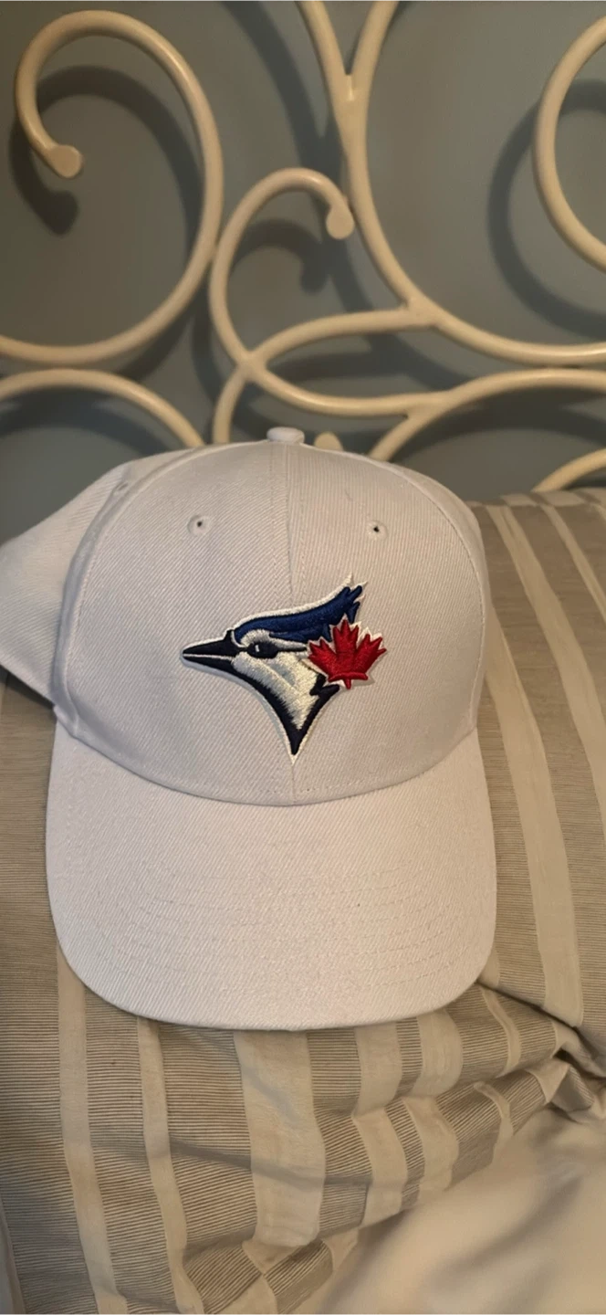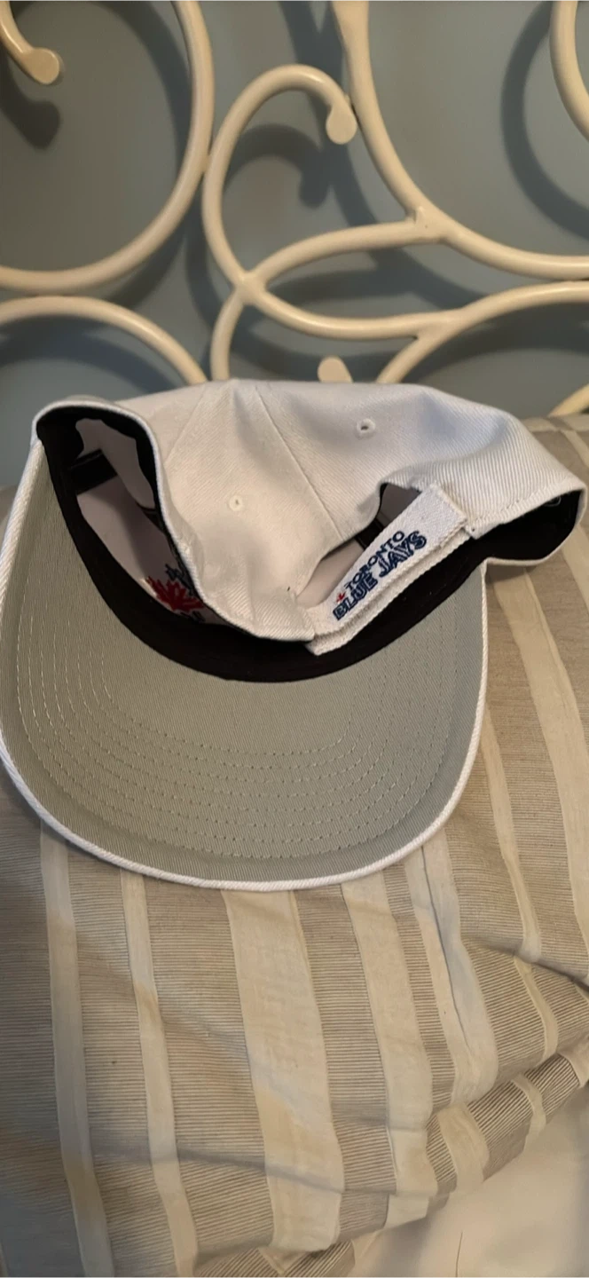 White Toronto Blue Jays baseball cap with embroidered logo. Adjustable snapback closure. One size fits most.