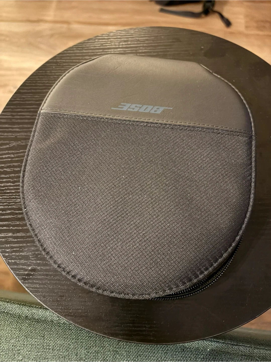 Protective Bose hard travel case designed to store and protect over-ear headphones. Durable shell with soft interior lining to keep headphones safe while traveling or in storage.