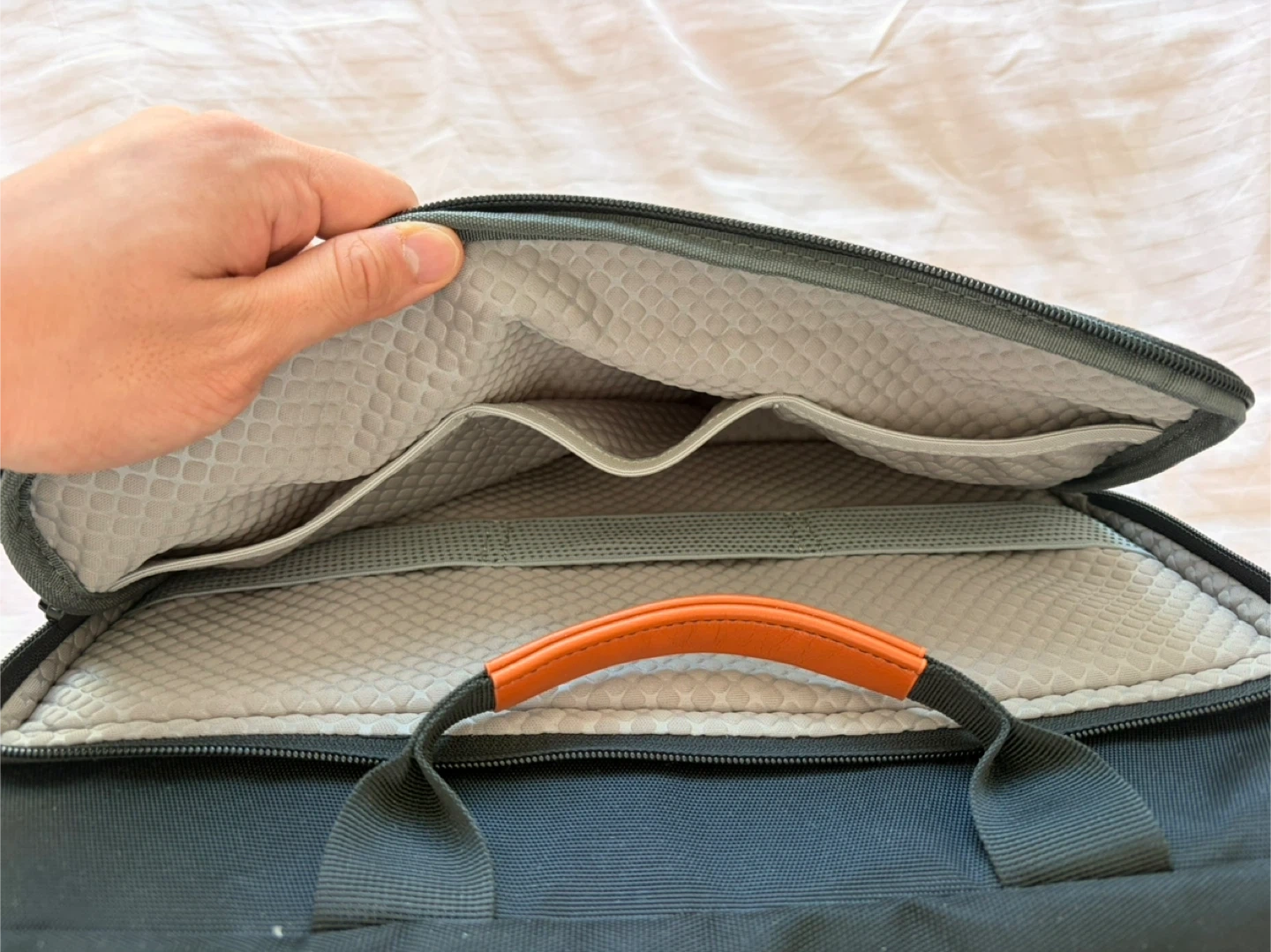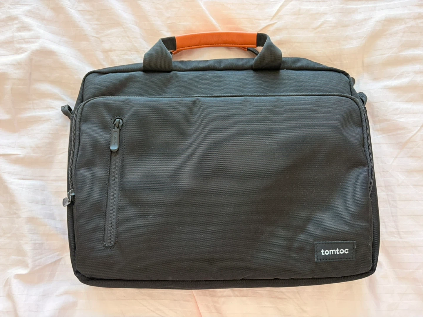 Selling a used tomtoc laptop bag. Plenty of pockets for organization and is in great condition. Please note that shoulder strap is missing.