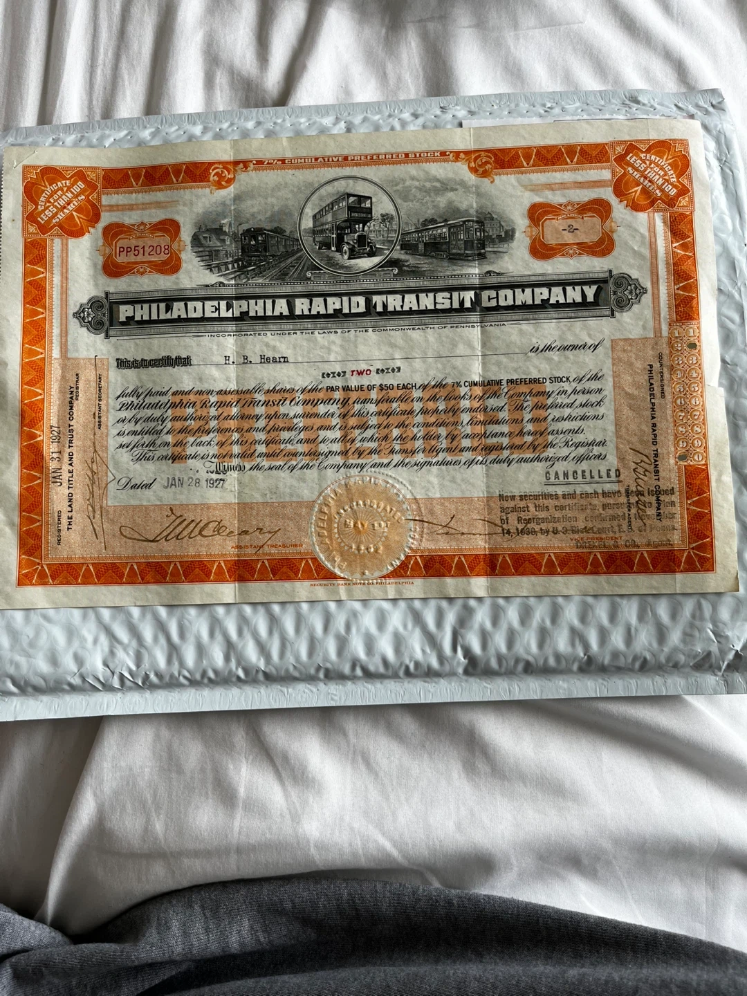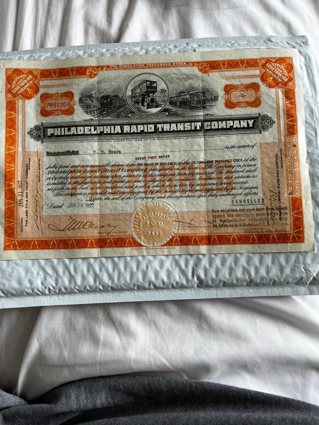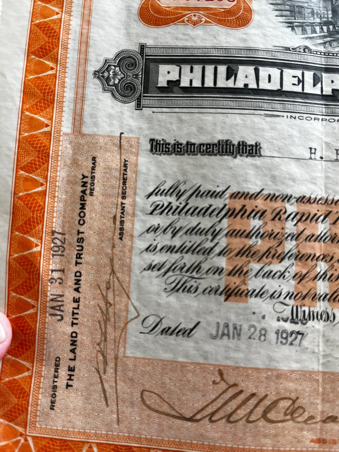 Buy & SellUSA Note Co Philadelphia Transit Company Stock Certificate 1926USA Note Co Philadelphia Transit Company Stock Certificate 1926$65Security Bank Note Co Philadelphia Rapid Transit Company Stock Certificate 1926 glcollectables (4984) 100% positive feedbackWHERE TO MEETCheck LocationView MapSELLERverifiedMustafaMarine Hamilton39038 reviews0 chats·1 favorites·6 viewsSEND CHAT TO SELLERHi Mustafa! I’m interested in your listing.Hi Mustafa! I’m interested in your listing.Get the Karrot app to chatSign In to chat