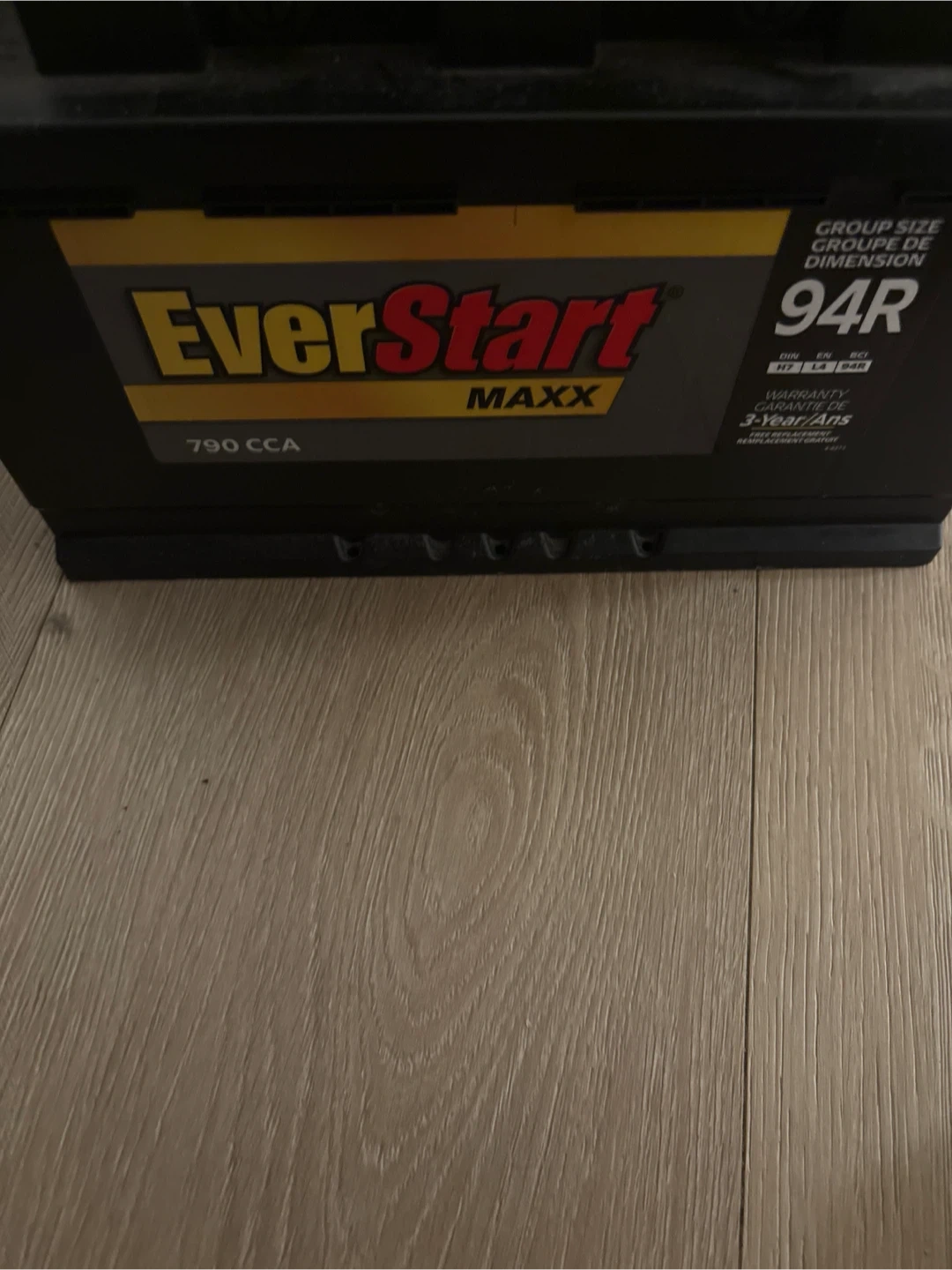 EverStart Maxx 94R car battery with 790 CCA. It offers a 3-year limited warranty. This battery is a group size 94R.