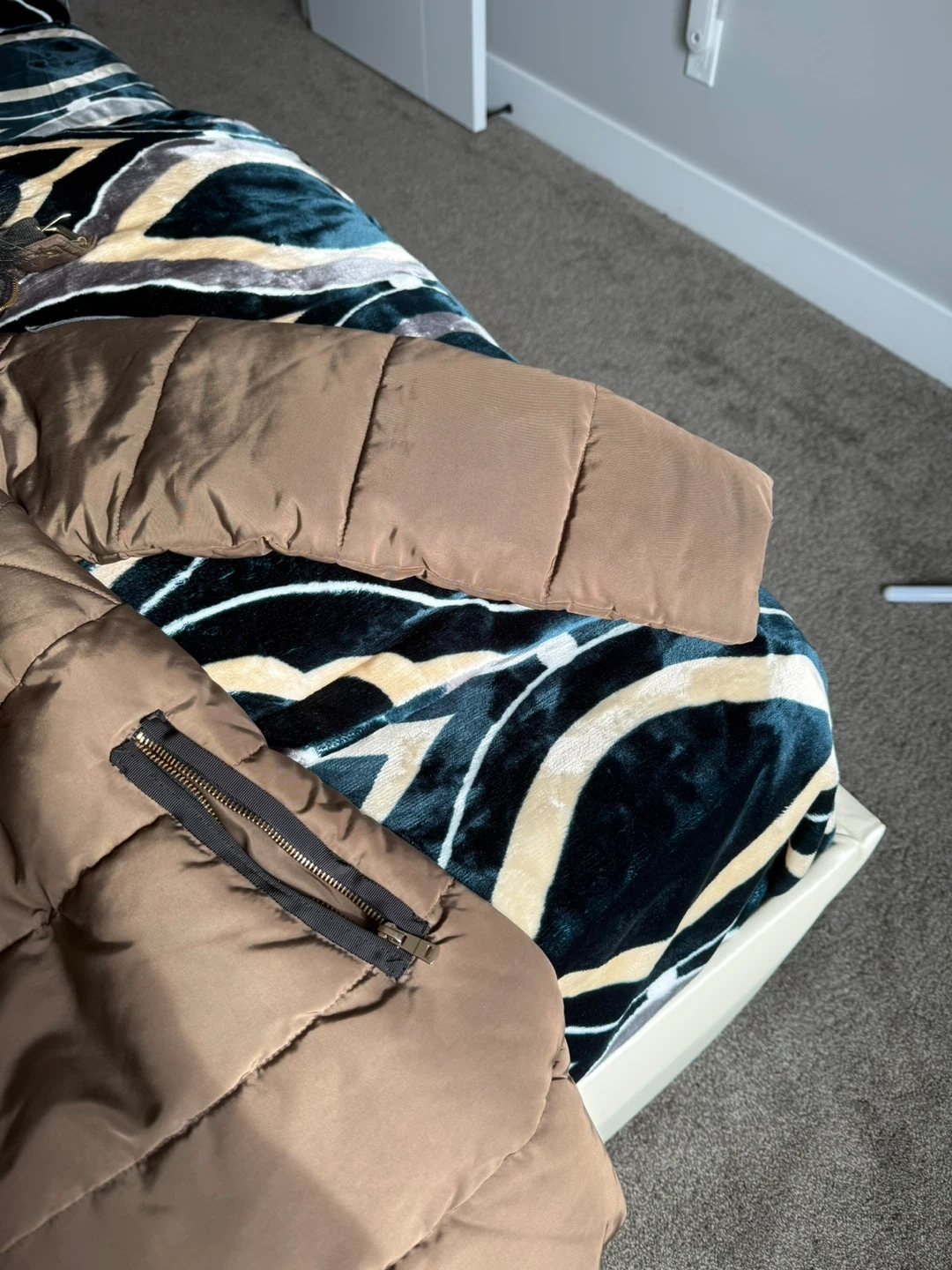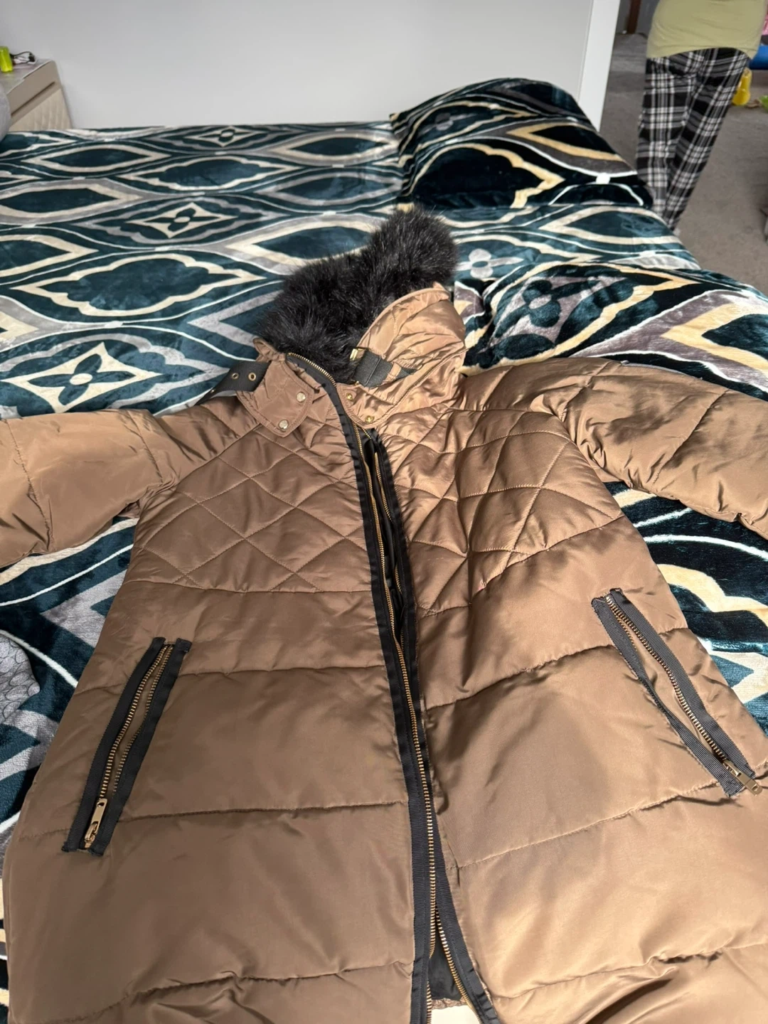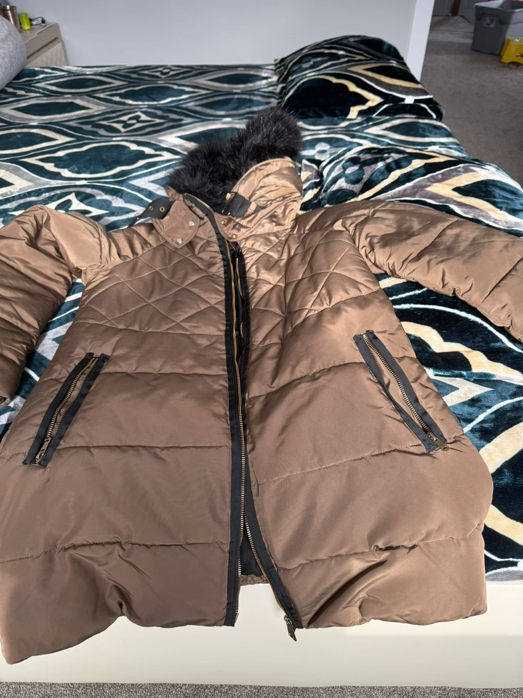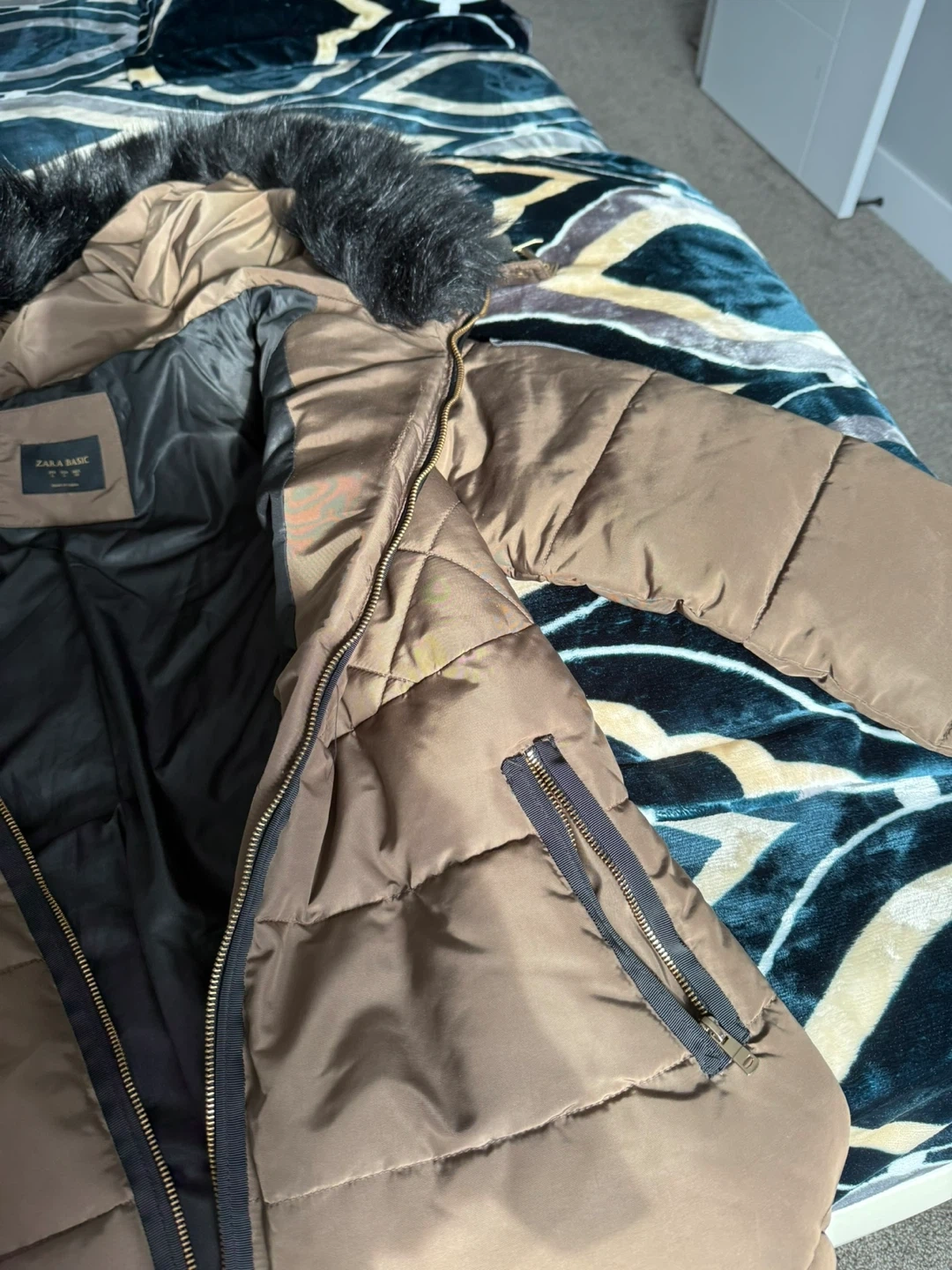 Zara Basic Brown Puffer Coat with Fur Hood - Size L