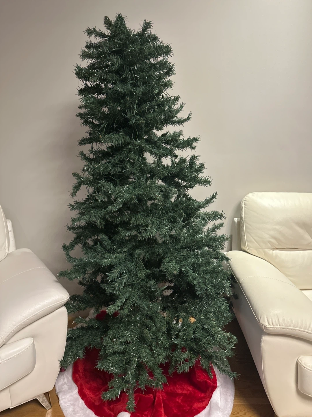 A pre-lit artificial 3 layer Christmas tree, perfect for your holiday decorations. It's a good height for most rooms.