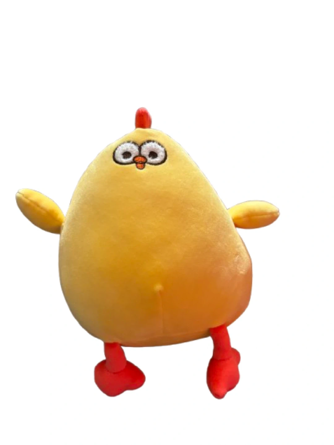 This adorable yellow chicken plush is bright, cheerful, and super cuddly. Features embroidered eyes, a soft rounded body, and bold red feet and comb. Clean, lightweight, and perfect for kids, gifting, or playful room décor.