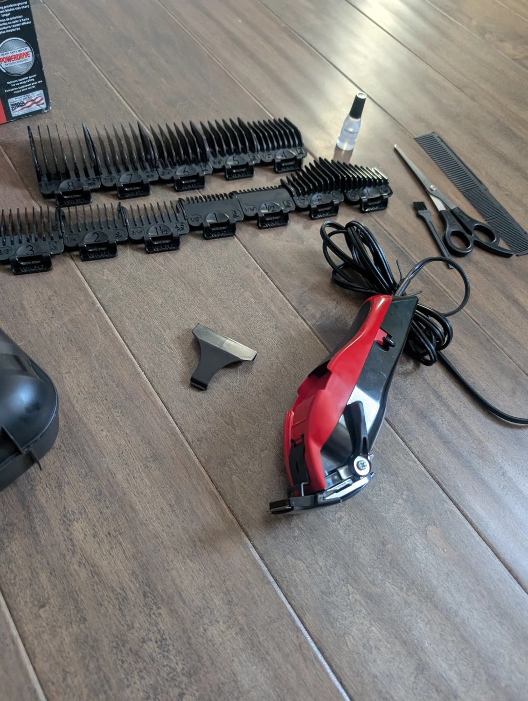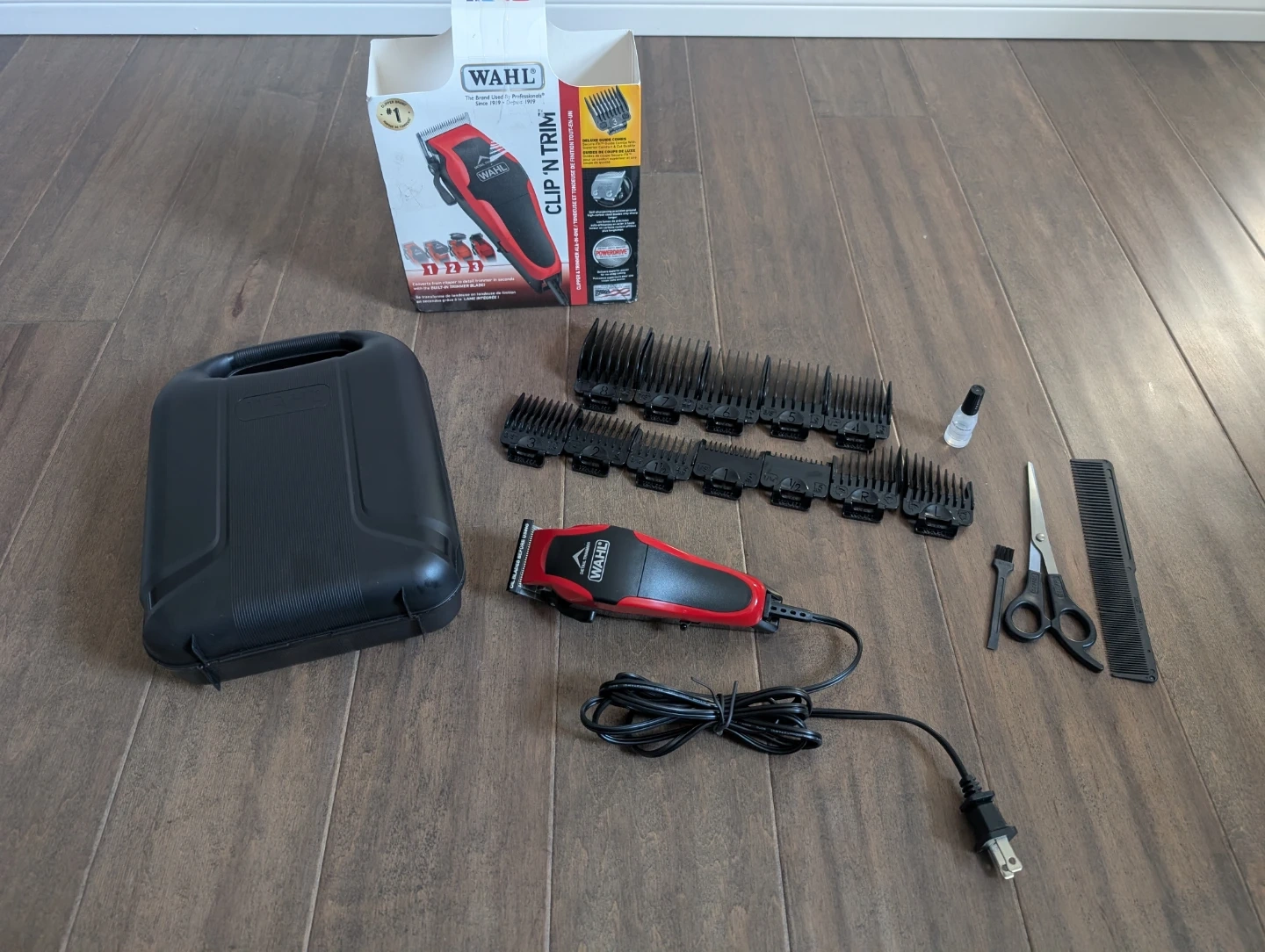 Brand new Wahl clip ‘n trim 20 piece hair cutting kit for sale. 12 smooth cut attachment guards, 7’ foot cord, self sharpening blades, built in trimmer, powerdrive heavy duty motor, $45 FIRM.