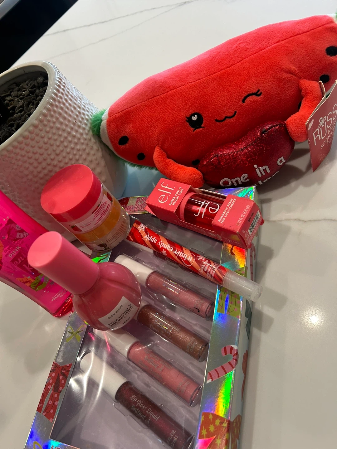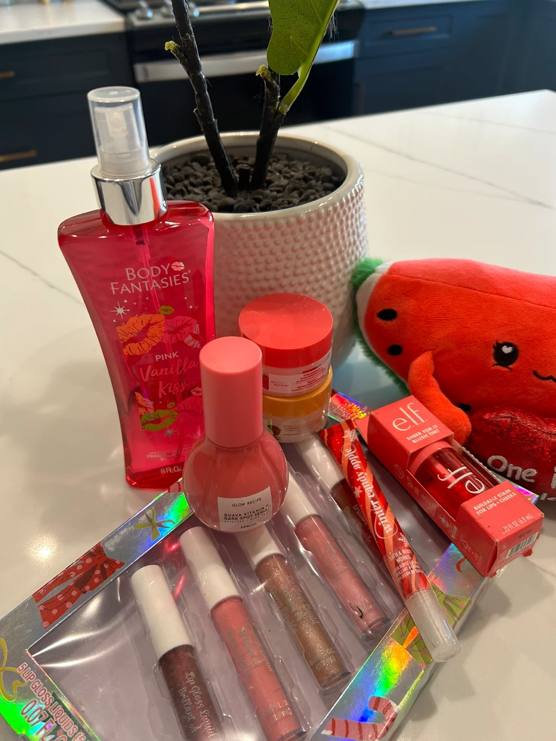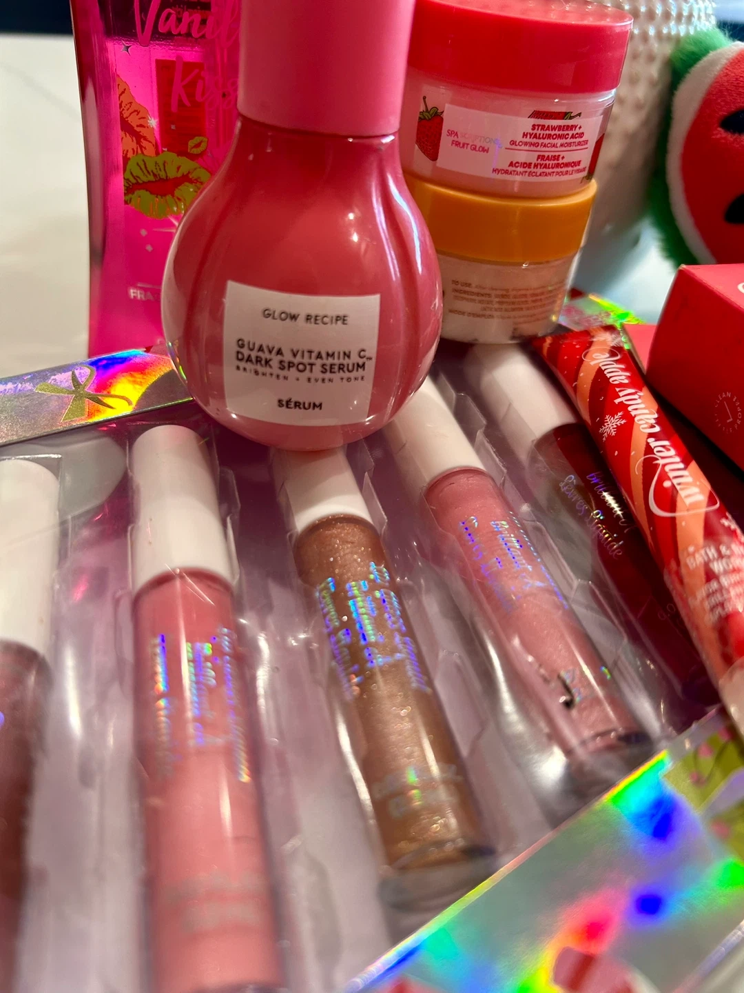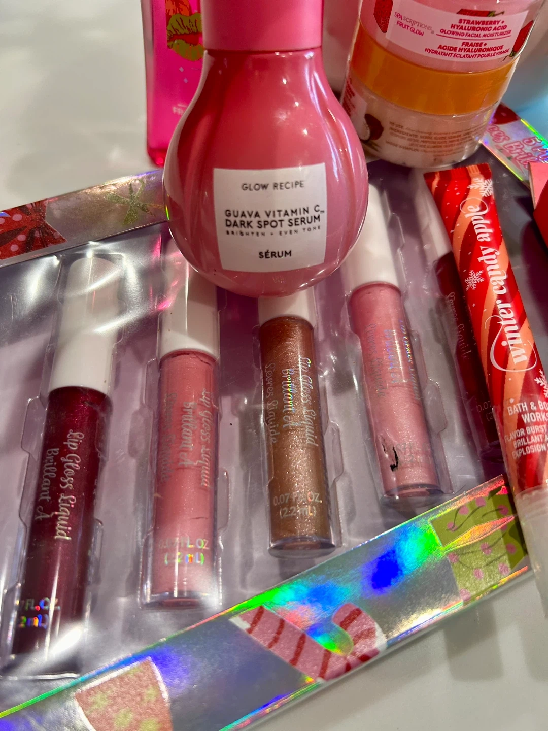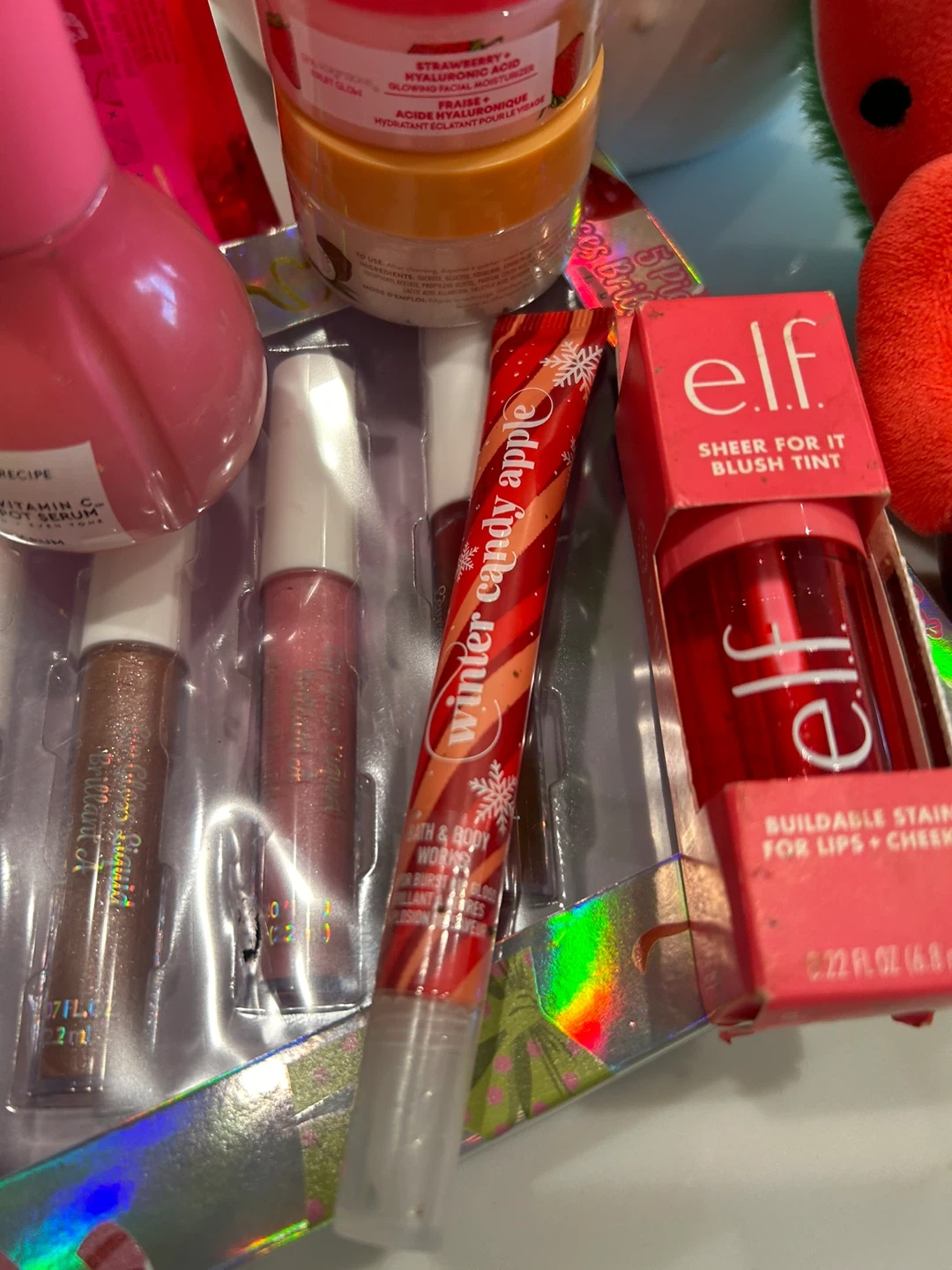 This set includes an Elf Blush Tint for lips and cheeks, plus a Glow Recipe Guava Vitamin C Dark Spot Serum. The Elf tint for lips and cheeks is 0.22 fl oz. Bath and body works lip gloss, lip gloss’s set , body vanilla spray and more all for an affordable price to spread love and kindness for self care . Perfect for Valentine’s Day 🩷or birthday gift
