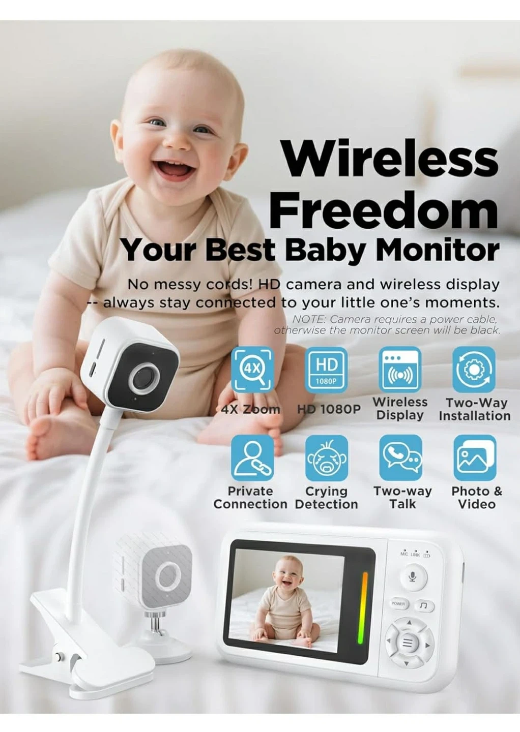 Baby Monitor with HD 1080P Camera and Wireless Display