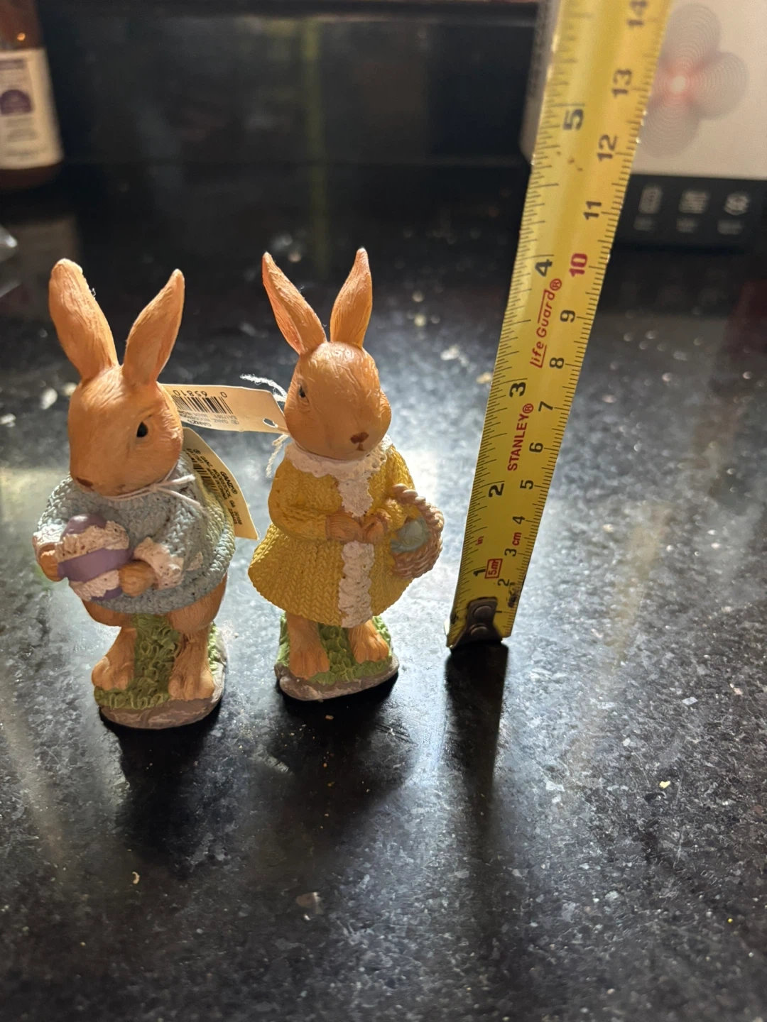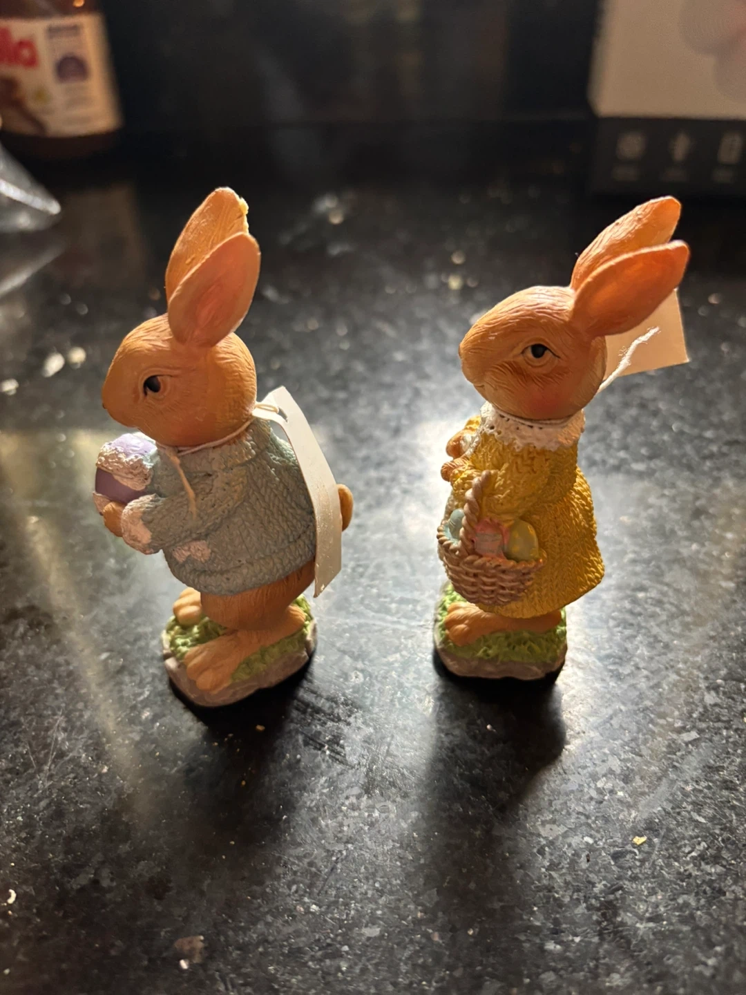 Easter Bunny Figurines with Egg and Basket