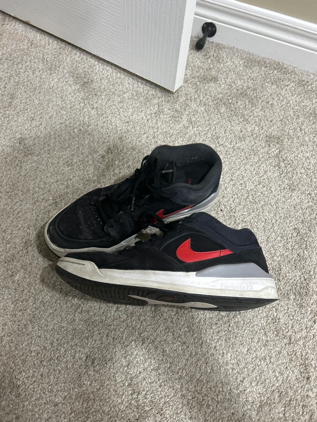 Men's Nike basketball shoes in black and red. Formula 23 model. Lace-up closure for a secure fit. These shoes are ready for the court!
