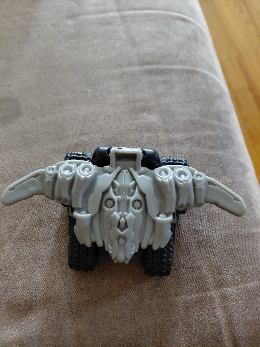 This is a grey Transformers Megatron toy with tank treads. It's a detailed action figure that can be transformed. Great for fans of the Transformers franchise!