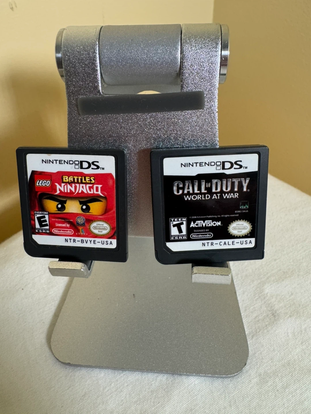 Two Nintendo DS game cartridges: Lego Battles Ninjago and Call of Duty World at War. Compatible with Nintendo DS systems. Includes original game cartridges. ojo se venden las dos