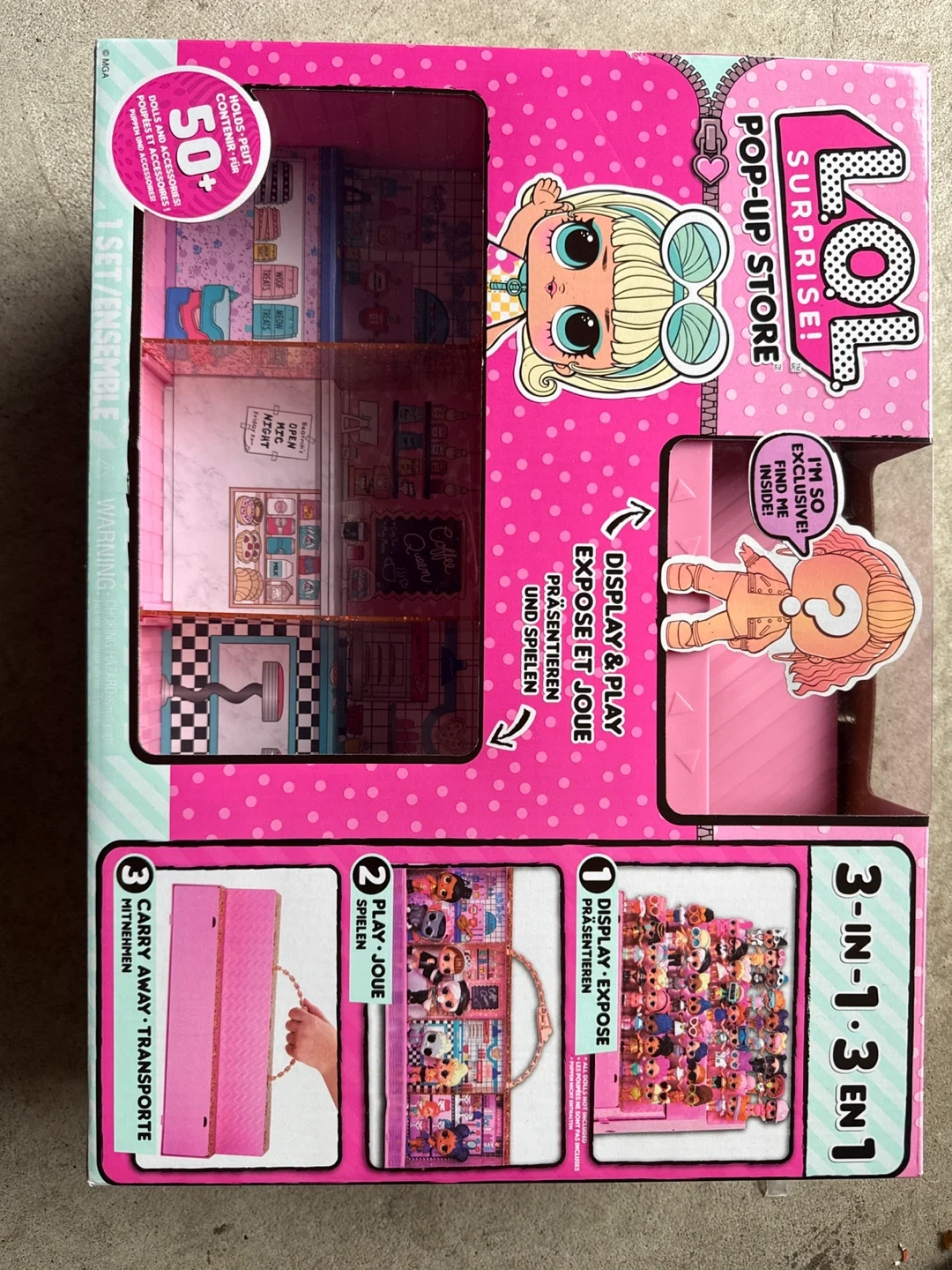 Selling a brand new LOL Surprise! Pop-Up Store playset, still in its original packaging! This 3-in-1 set can be used to display, play, and carry your LOL Surprise! dolls and accessories. It can hold over 50 dolls and accessories. Please note that the dolls are not included. Perfect for any LOL Surprise! fan!