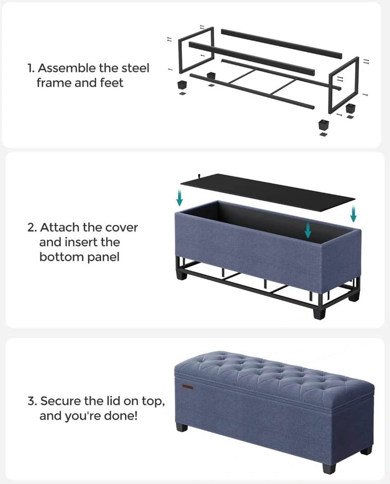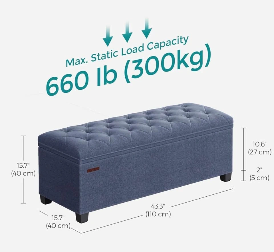 This brand-new ottoman bench, model ULSF088Q01, combines style and functionality, offering a robust seating and storage solution for your home. With a maximum load capacity of 660 lb, it's as sturdy as it is elegant. Perfect for decluttering while adding a touch of sophistication to any room. Key features include: High load capacity: Supports up to 660 lbs. Elegant design: Enhances any room décor. Storage solution: Ideal for decluttering and organizing. Sturdy construction: Ensures durability and long life. Spruce up your space with this versatile ottoman bench!