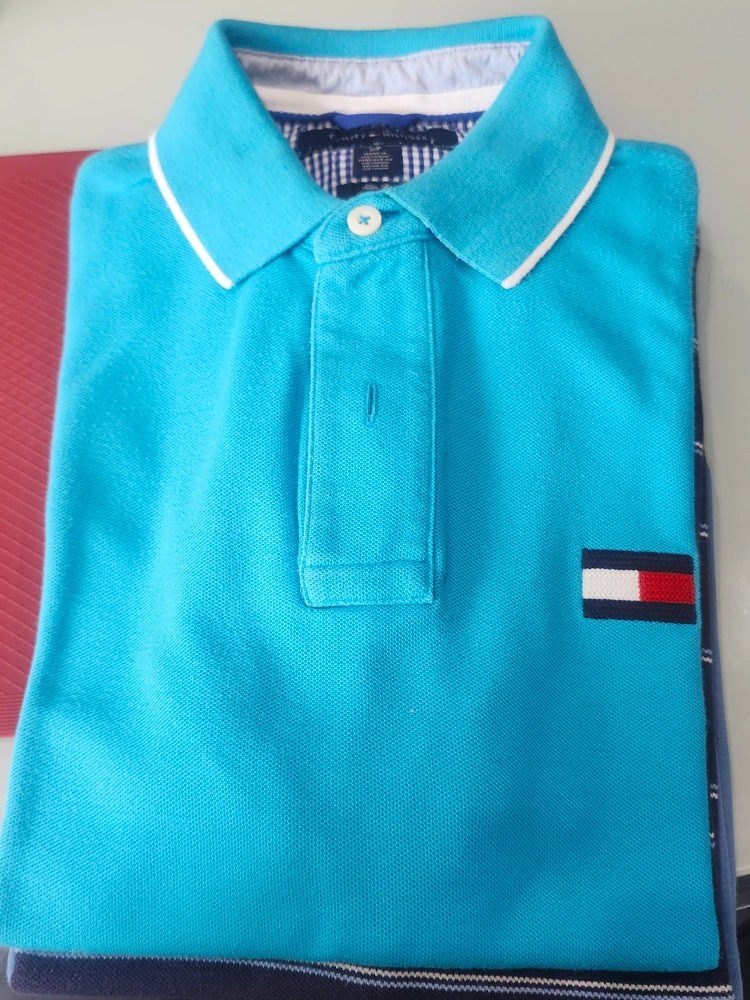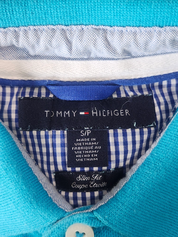 Selling a Tommy Hilfiger polo shirt in great condition! It's a slim fit and size small. The colour is a vibrant turquoise. Perfect for a casual day out!
