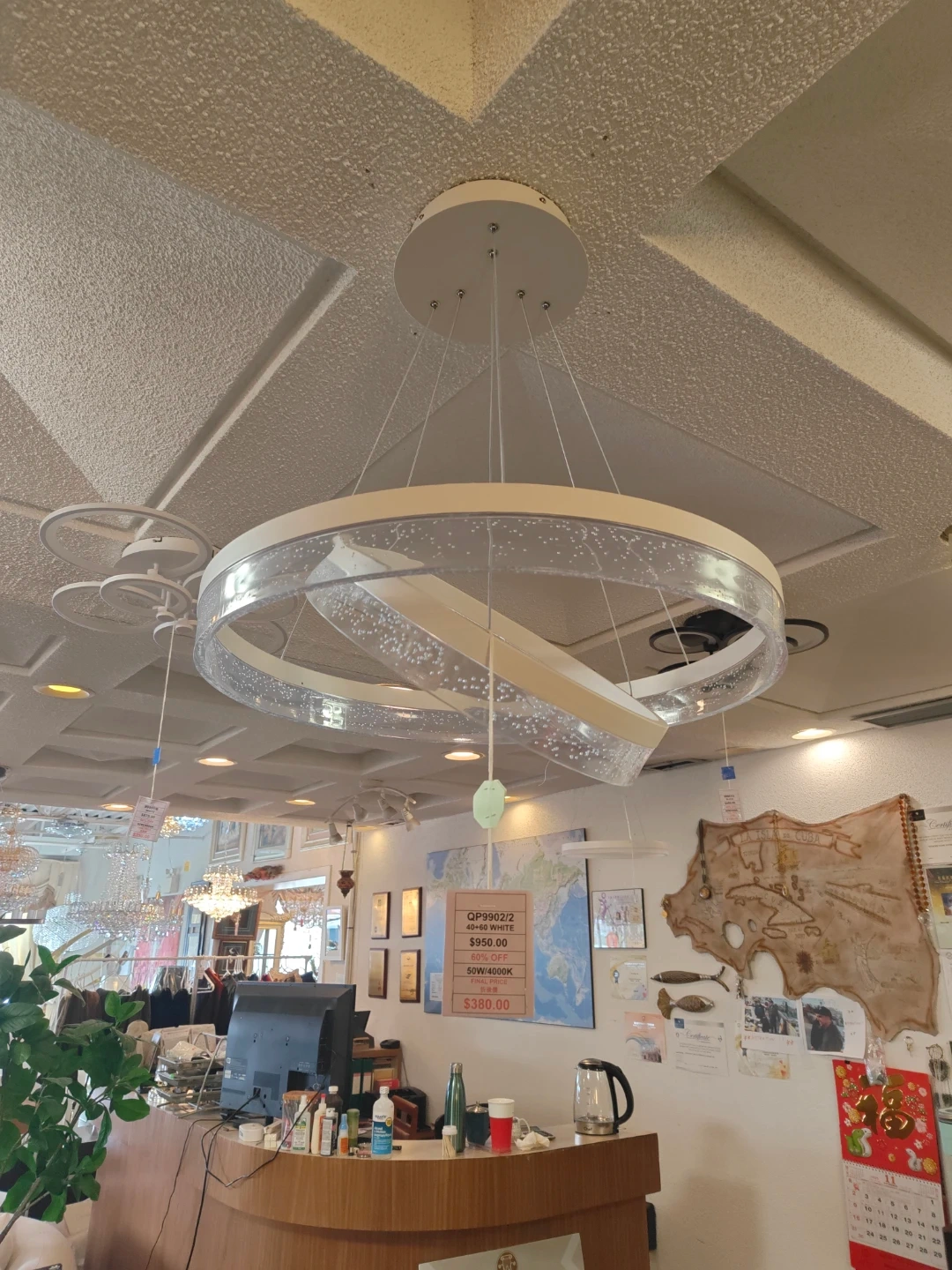 10Selling a QP9902/2 chandelier in white! It's a stylish 50W/4000K lighting fixture. Now available for a great deal! In store pick up only Installation separate