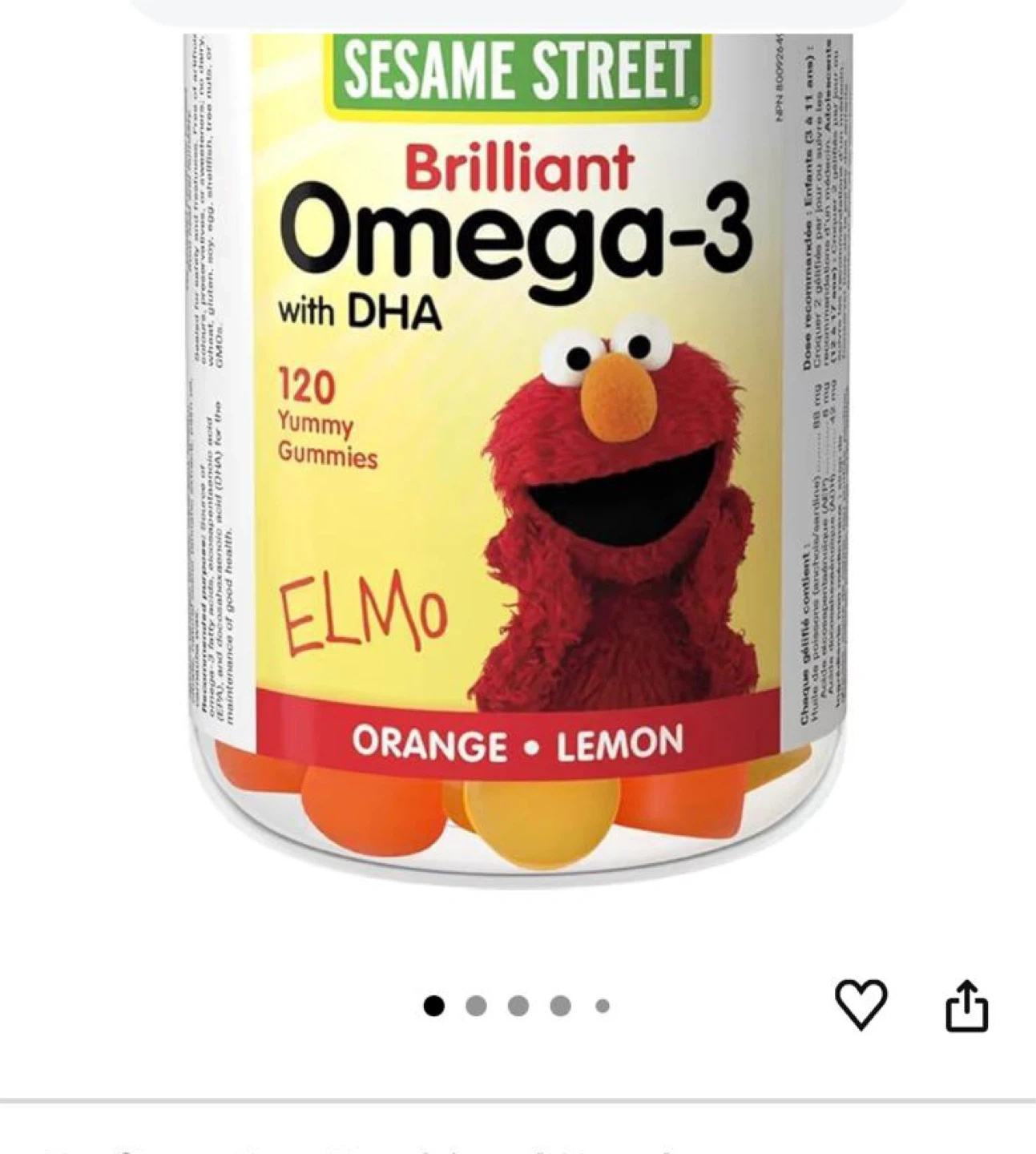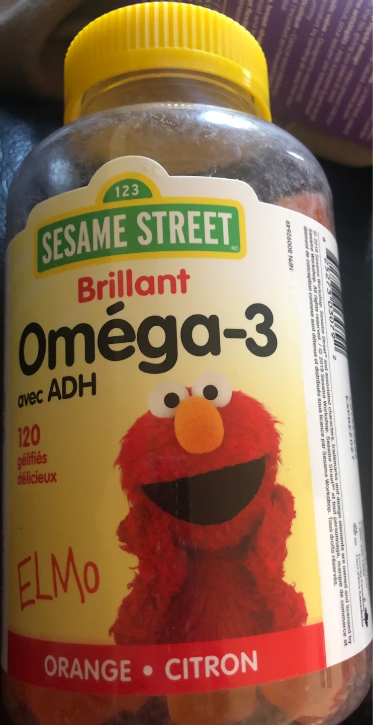 Sesame Street Brilliant Omega-3 sealed gummies with DHA. Contains 120 yummy gummies in orange and lemon flavours. Recommended for ages 3-15.