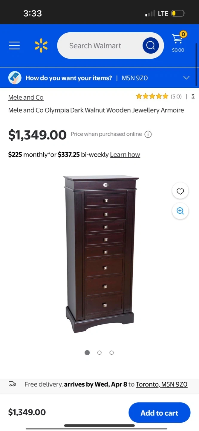 Mele & Co. Olympia Dark Walnut Jewellery Armoire
