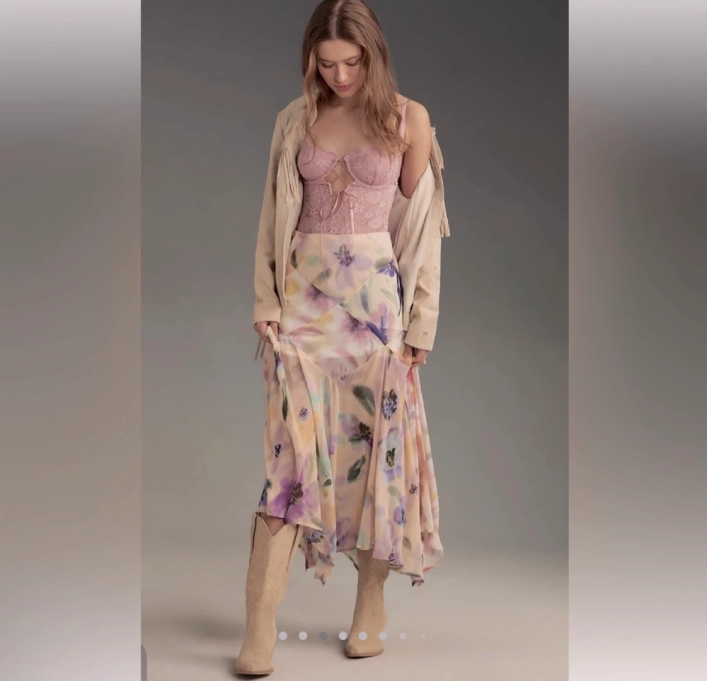 Anthropologie Floral Print Midi Skirt With Flaw