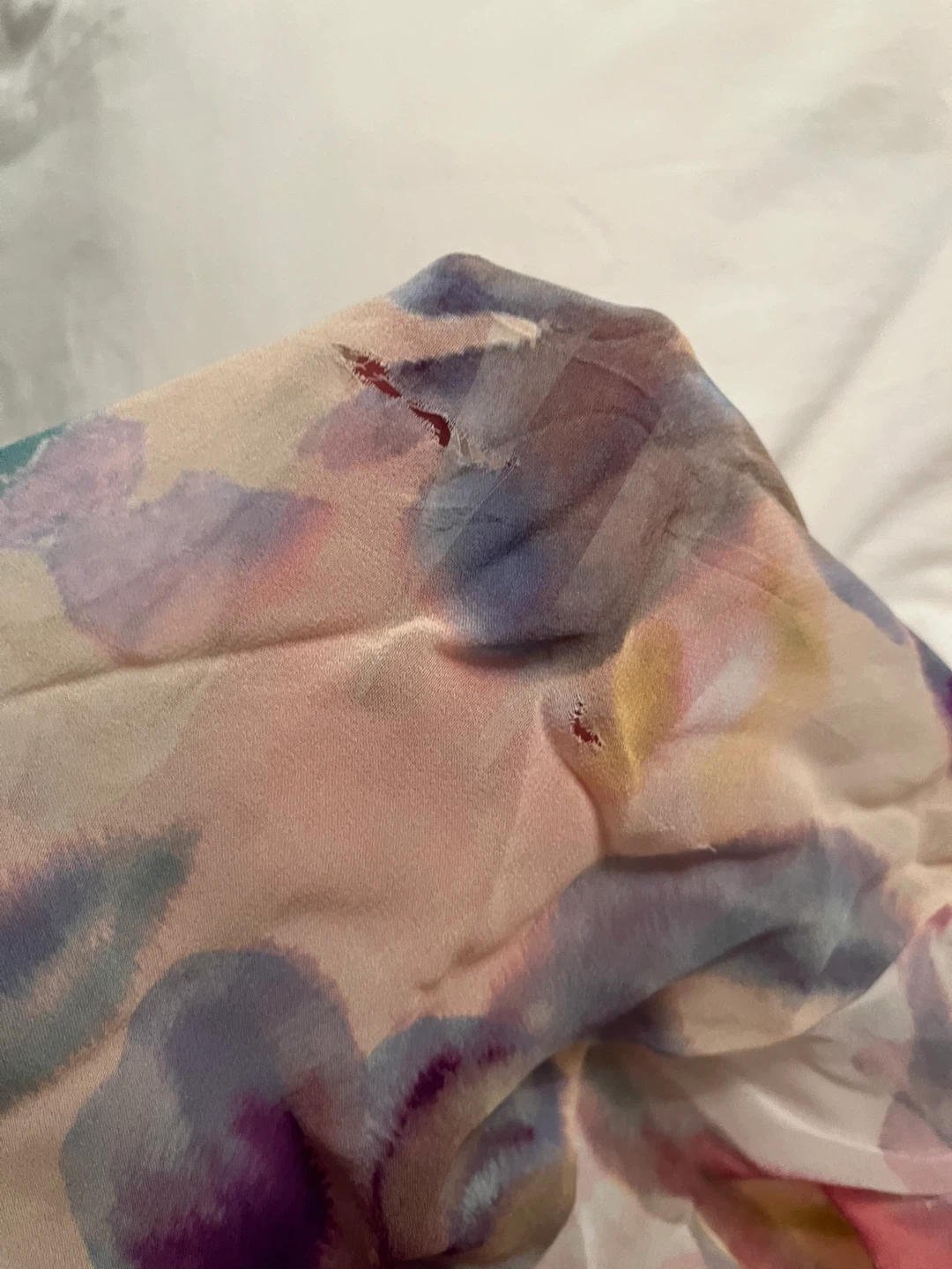 See photo for the fabric tear. You can’t see it due to the colourful pattern. Selling as is