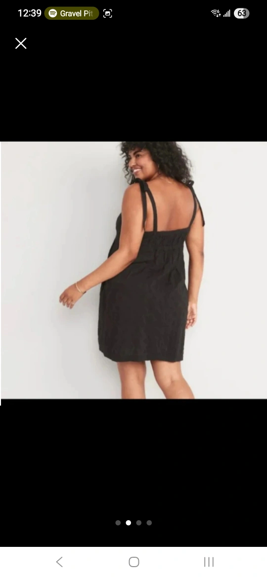 A cute black dress from Old Navy! It features tie straps and a textured fabric. Perfect for a casual outing or dressing up with accessories. has pockets! Size 2X.