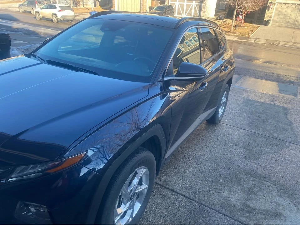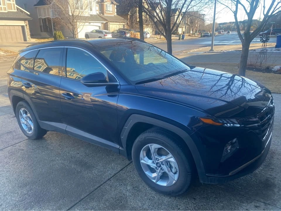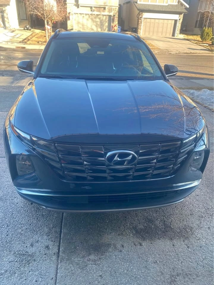 Original owner, red-seal mechanic. Well maintained, no accidents, no rust. Smoke-free. Exterior is very clean. Features include an efficient 2.5L 4-cylinder engine (regular gas), AWD, black leather interior with heated front seats and steering wheel, panoramic sunroof, large touchscreen, adaptive cruise control, lane keep assist, blind spot warning, and full Hyundai safety tech. Extended powertrain warranty: 8 years / 160,000 km. Minor cosmetic flaws: small dent on left rear door (hard to see from a distance) and a couple of light scratches on the hood (touched up, see photos). Drives perfectly. I will cover windshield replacement after purchase. $32,000 OBO. No trades. Located in Calgary.