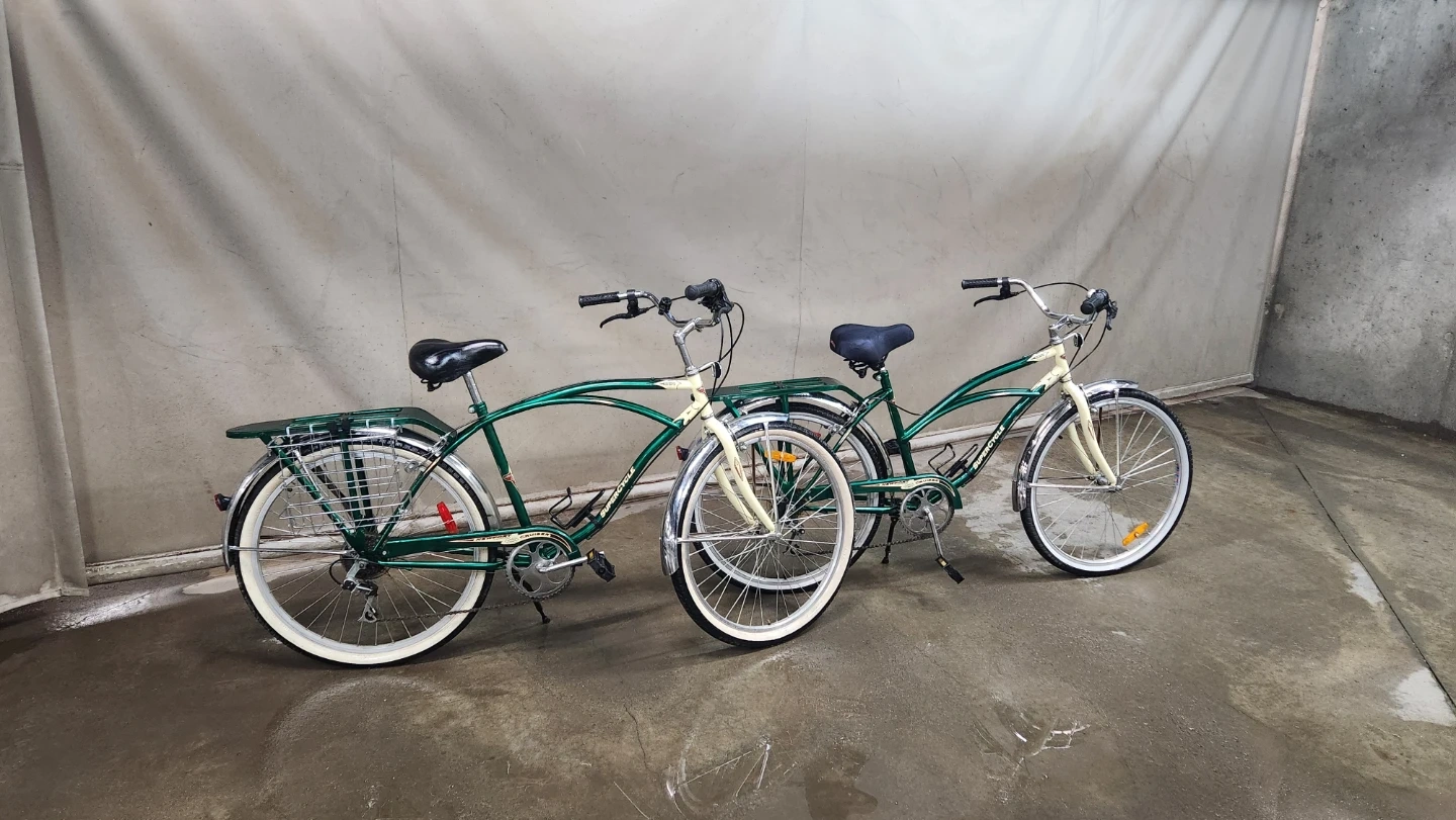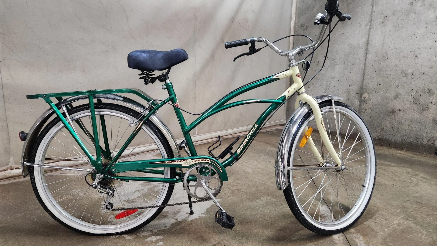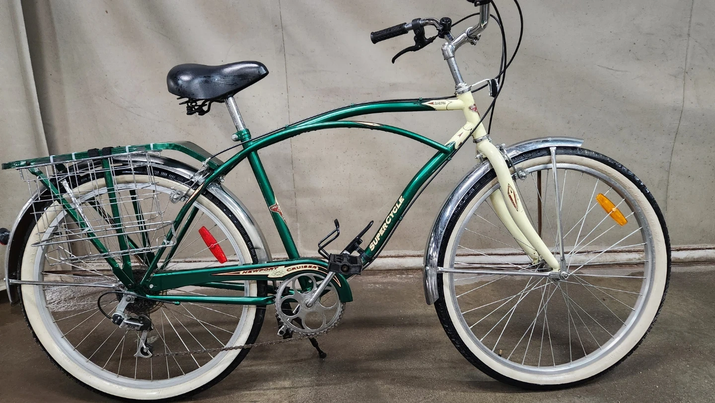 Green and cream Supercycle cruiser bicycles. His and her set. 19" frame, 26" tires. Six-speed model with grip shifter. Retro look with rear rack and fenders. These bikes are great for cruising around town! Selling for my parents. Price is for each bike.