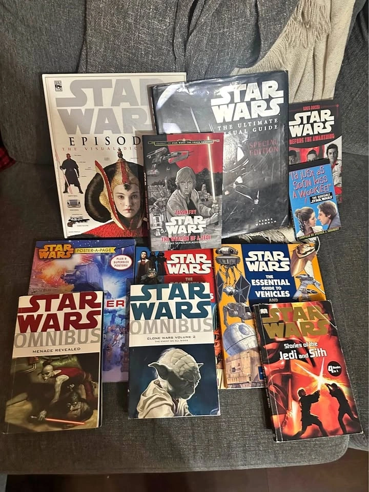 11 Star Wars books. The two Omnibuses sadly show damage, one with loose pages and the other with water damage. The rest are in good to great condition. These would be great books for any Star Wars fan or collector. $75 OBO takes them all. Pick up in New West at 8th St and 8th Ave, or at Coquitlam Centre.